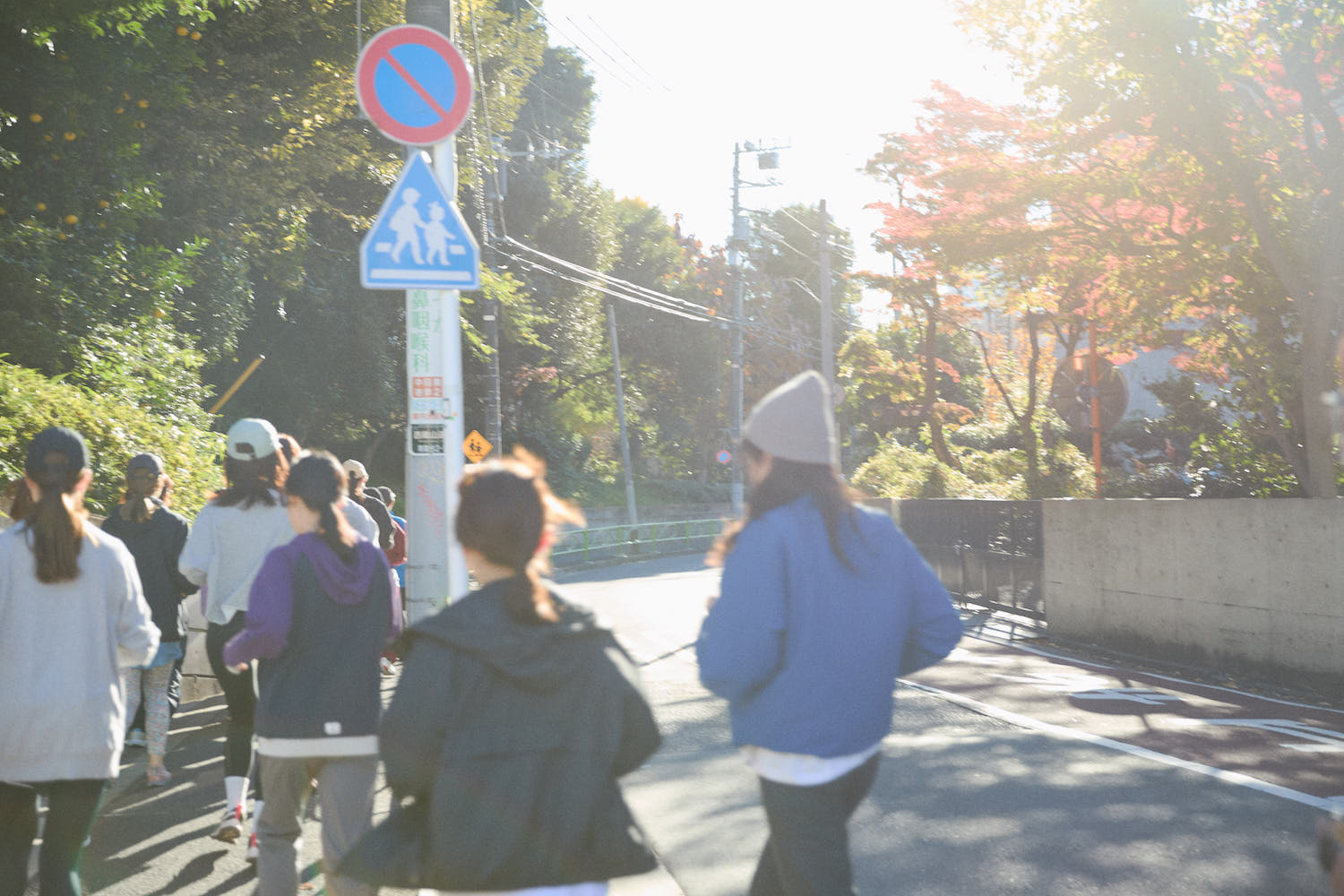 少しずつ紅葉が始まった目黒川沿いの景色を楽しみながら、カフェへ向かってリターン。体もだんだんと温まってきて、なんだか足取りが軽いような。みなさん余裕の表情です。