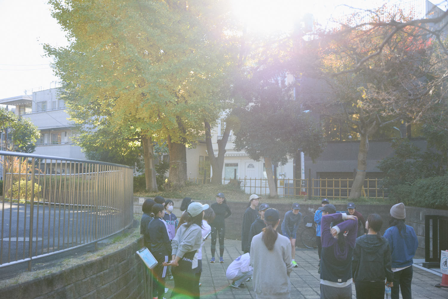 11月30日(土)8:00、〈アロー中目黒〉に集合したFUDGEランニング部4回目。11月に入り朝晩はグッと冷えるようになり、この日も冬の訪れを感じるようなひんやりした空気。そんな中集まっていただいたみなさんと、まずは集合写真をパシャリ!