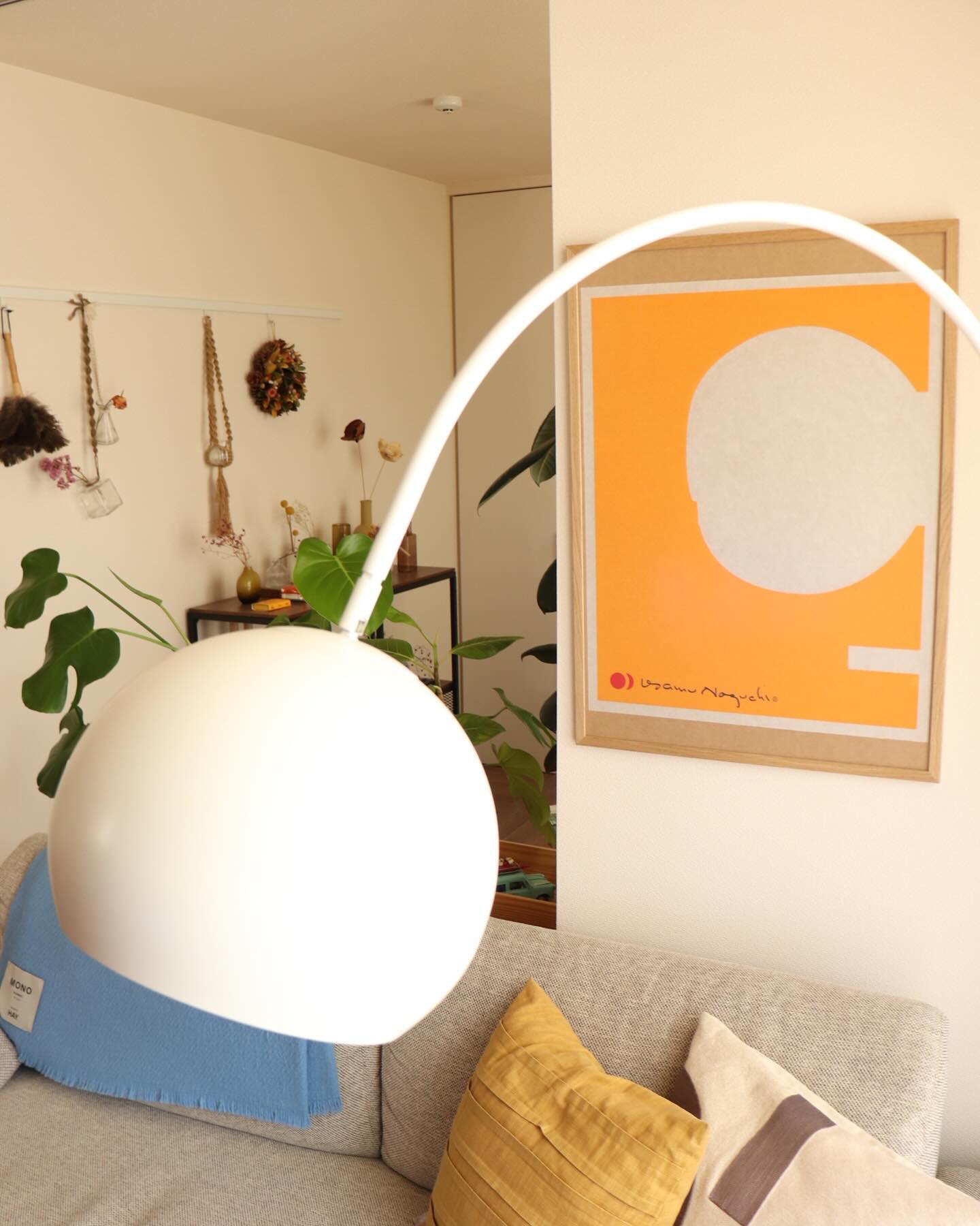 ブルーのブランケットや、オレンジ色のポスターなど、小物でうまくアクセントになるカラーも取り入れていらっしゃいます。