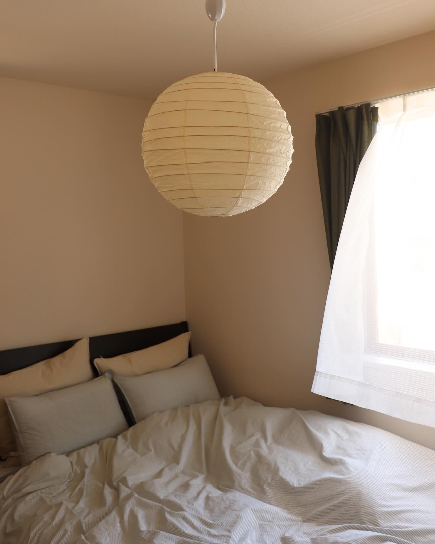 ベッドルームには存在感のあるイサムノグチのAKARIをつけられていました。