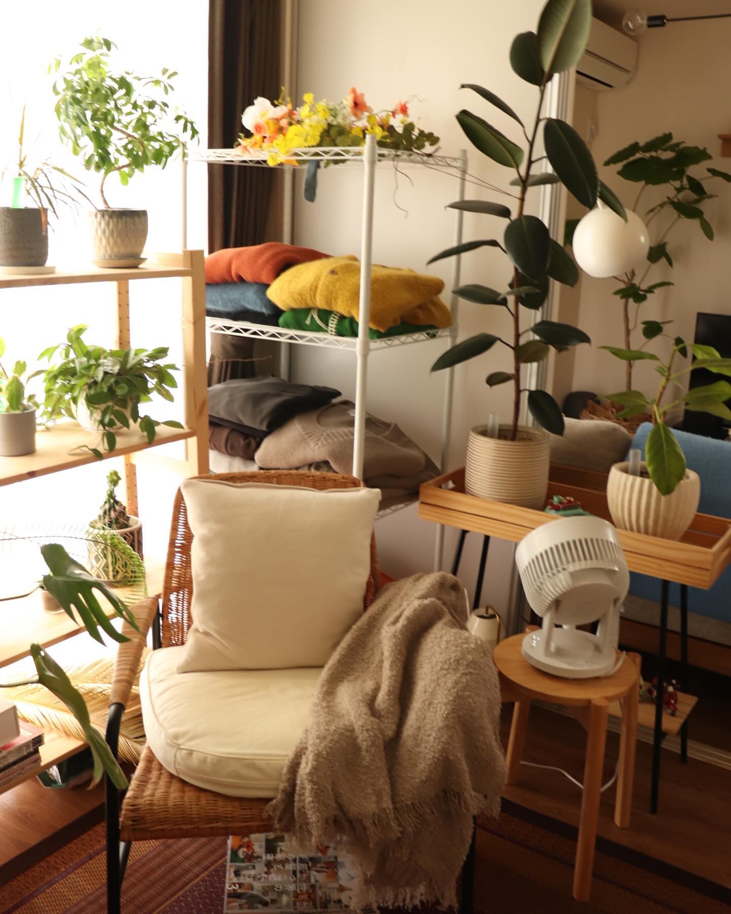 「好きなものの詰め合わせかつ、カフェみたいにいろんな場所でリラックスできる空間」を目指していると教えてくれたkazuさん。