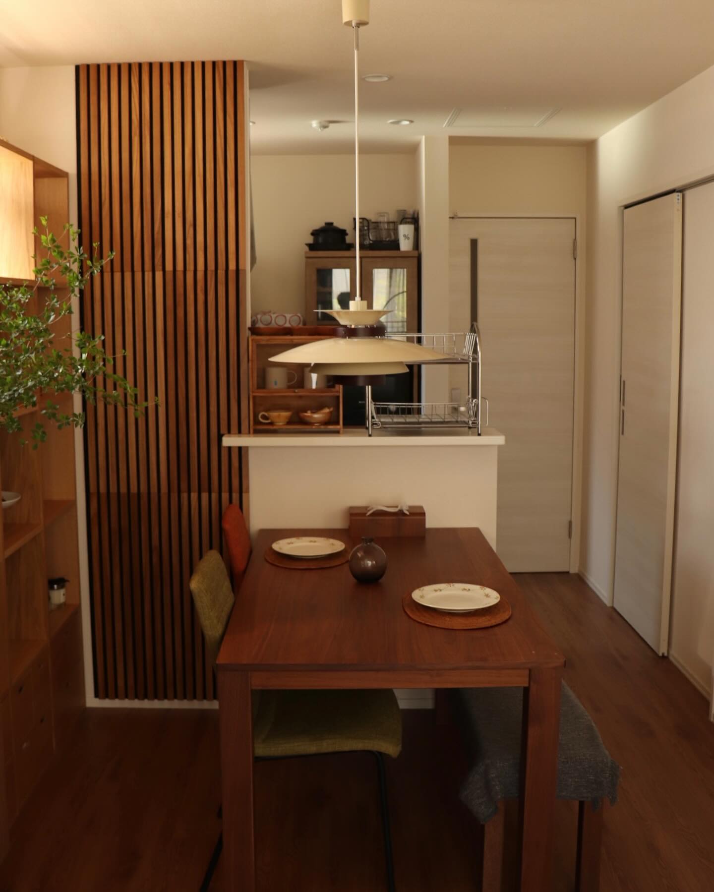 もうひとつ、kazu さんのお部屋の特徴となっているのが、キッチンの木のスリットパネル。