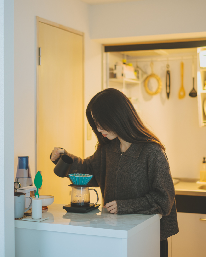 「いつもここでコーヒーを淹れたり、料理の準備をしたりしていますが、部屋の全体を見渡せるので大好きなスペースです」