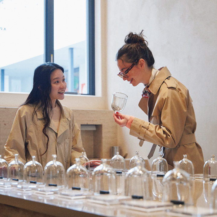 パリジェンヌの毎日に欠かせない“香り”の習慣。日本のフレグランスブランドも気になるというAnneが訪れたのは、国内の自社工場で製造される《アポテーケ フレグランス》。世界各国の文化や歴史、音楽など、あらゆるインスピレーションソースから生まれた40種類以上の香りは、日本らしい繊細なニュアンスと奥行きが特徴。ストーリーを感じさせる香りの名前から選んでみるのもいいかも。何気ない日々のシーンを素敵に香りづけて。