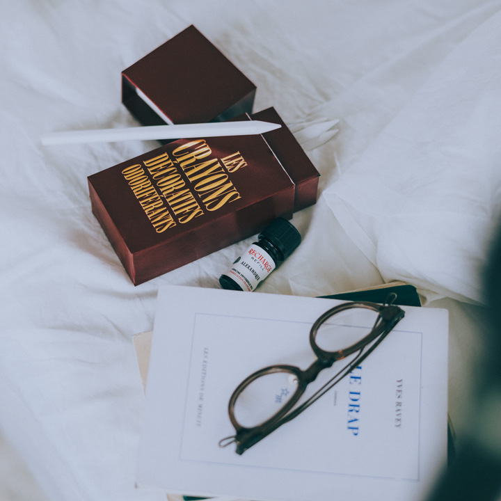 クレヨン・オドリフェラン(ペンシル×4本、オイル×1本) ¥11220/OFFICINEUNIVERESELLE BULY(ビュリージャパン)メガネ¥47300/FN ⁄ FOUR NINES(フォーナインズ)