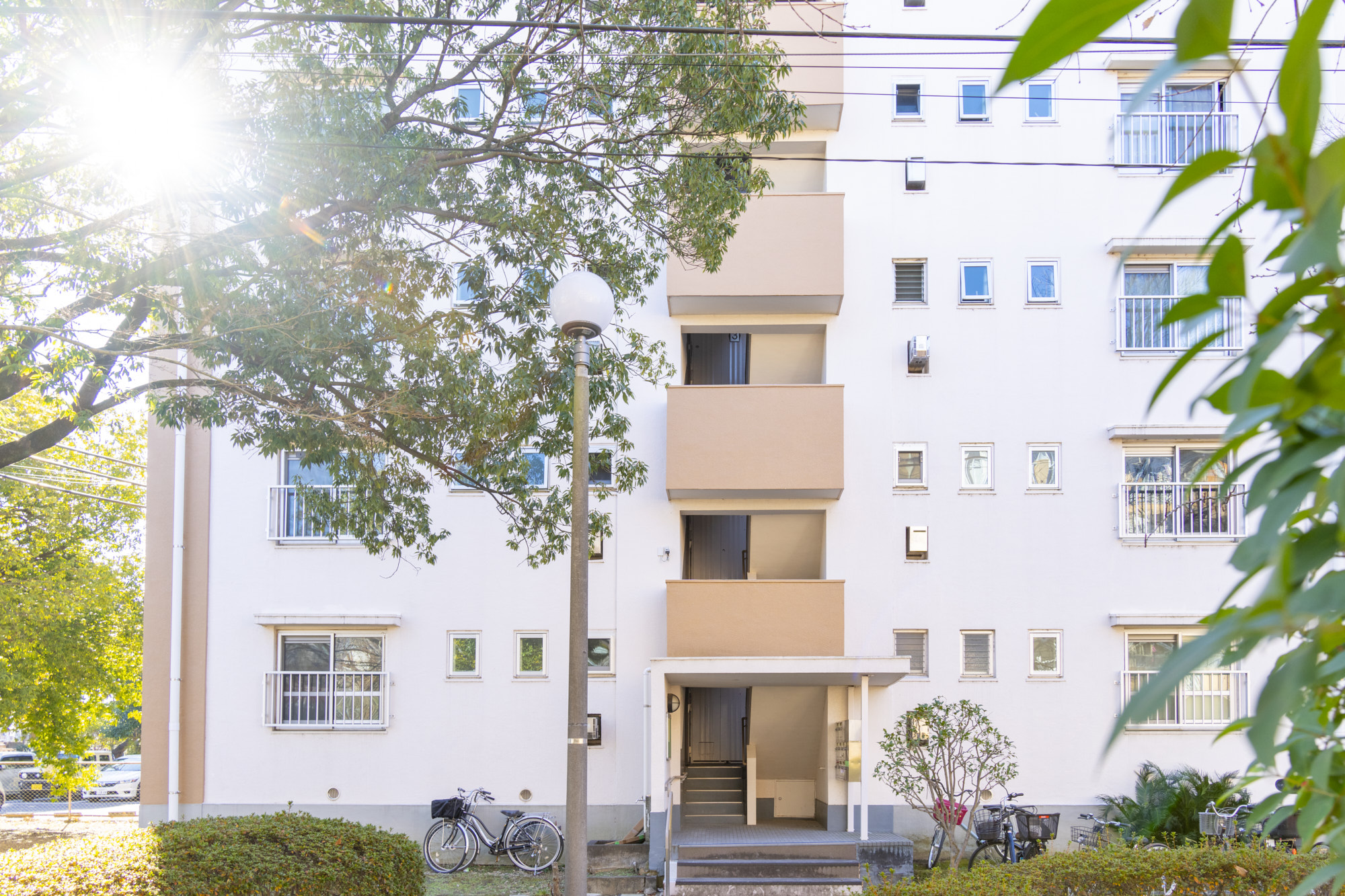 紹介する新栄団地は1974年に建てられた1586世帯の大型団地。でも51年も経ってるなんて信じられないくらい、めっちゃきれいなんです。