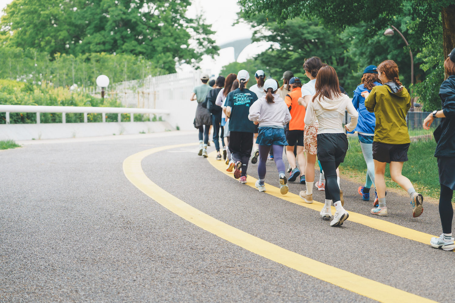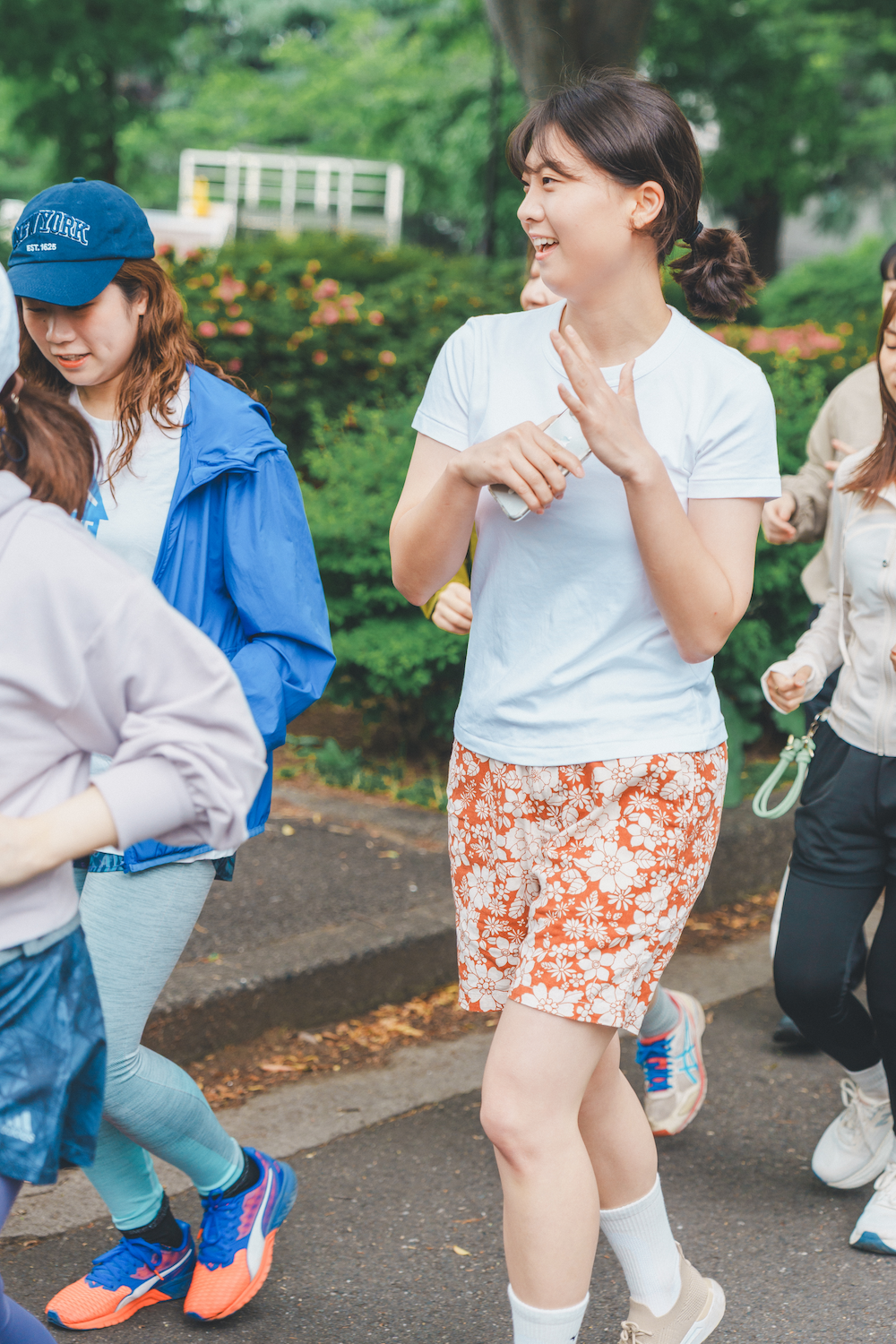 ペーサーは桜子ちゃん、モデルの五十嵐ソフィーちゃんもジョイン。桜子ちゃん主導のもと全員でストレッチをして体をほぐしたら、いざジョギングコースへ。