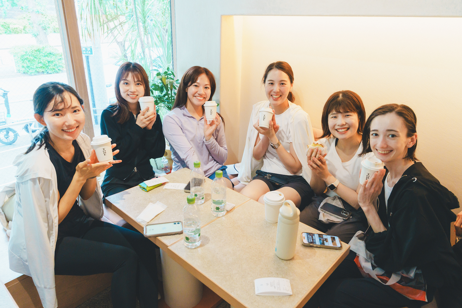 2周目も走り切り、無事にカフェへとゴール。スローペースとはいえ、4kmほど走るとしっかり汗をかきました。達成感からか拍手で頑張りを称え合いましたよ。