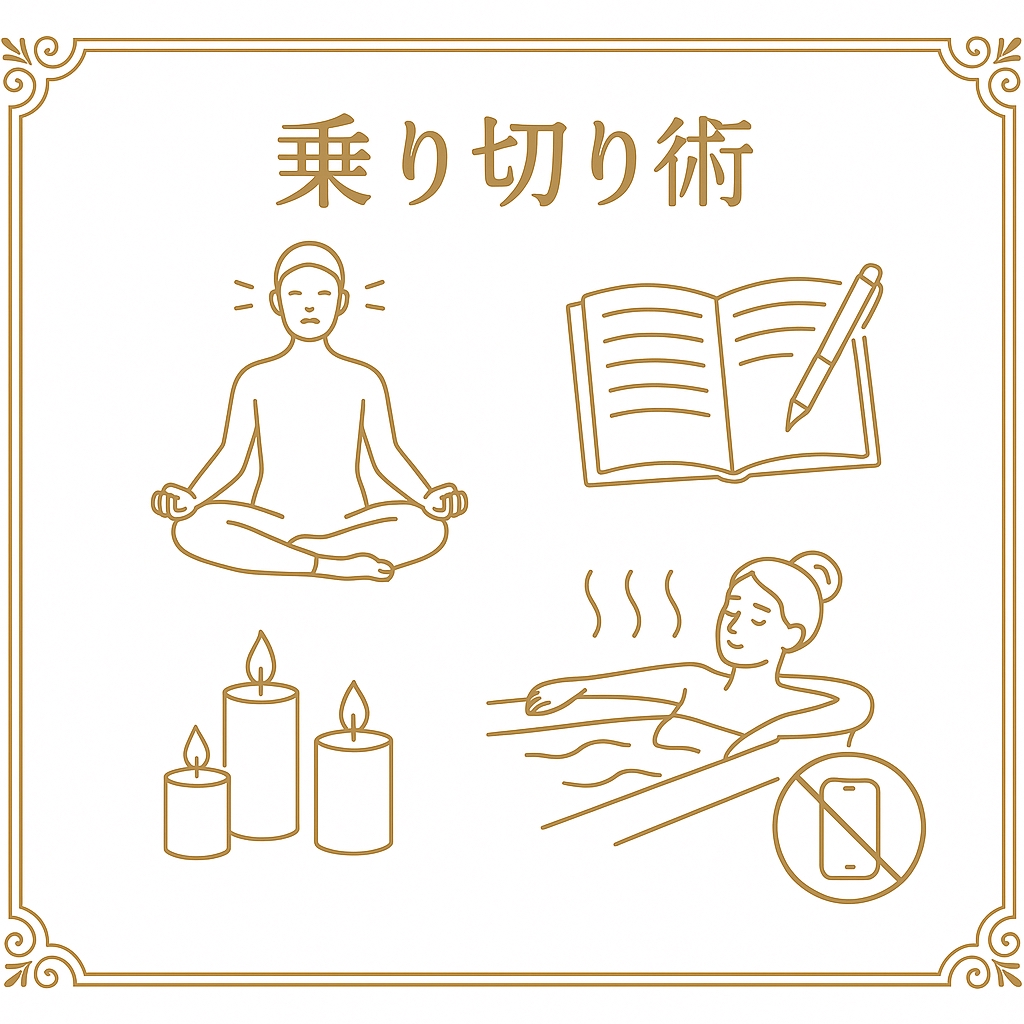 - リラックスタイム: 長めにお風呂に浸かったり、アロマを焚いたりして、心からリラックスする。