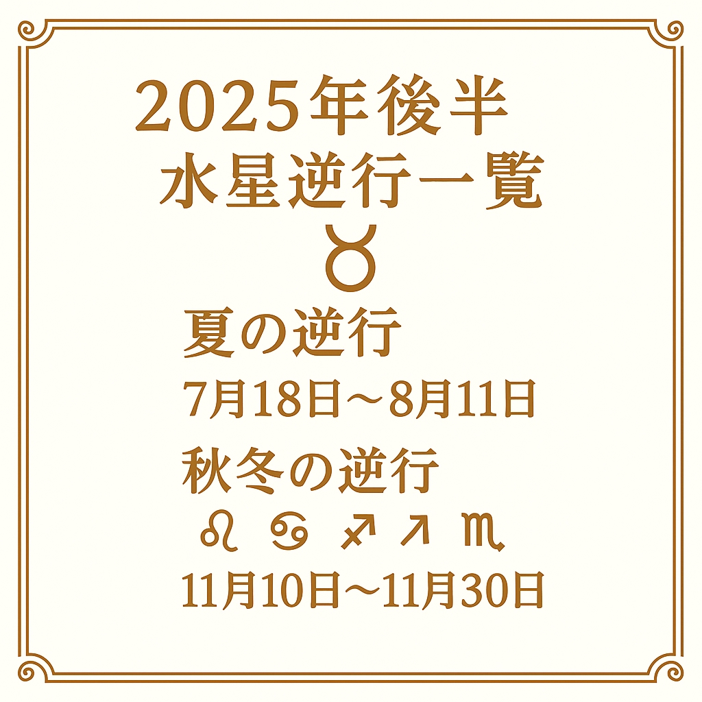 2025年には全部で3回の水星逆行がありますが、ここでは後半の2回に注目します。それぞれの期間と、影響が出やすい星座のテーマを見ていきましょう。