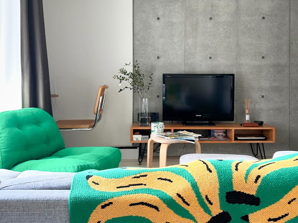 ミッドセンチュリー調のインテリアがお好きな、テルさん。お部屋のなかで鮮やかに彩られる緑のチェアや、ブランケットなど。好きを思い切り詰め込んだ、一人暮らしの愛用品を教えてもらいました。