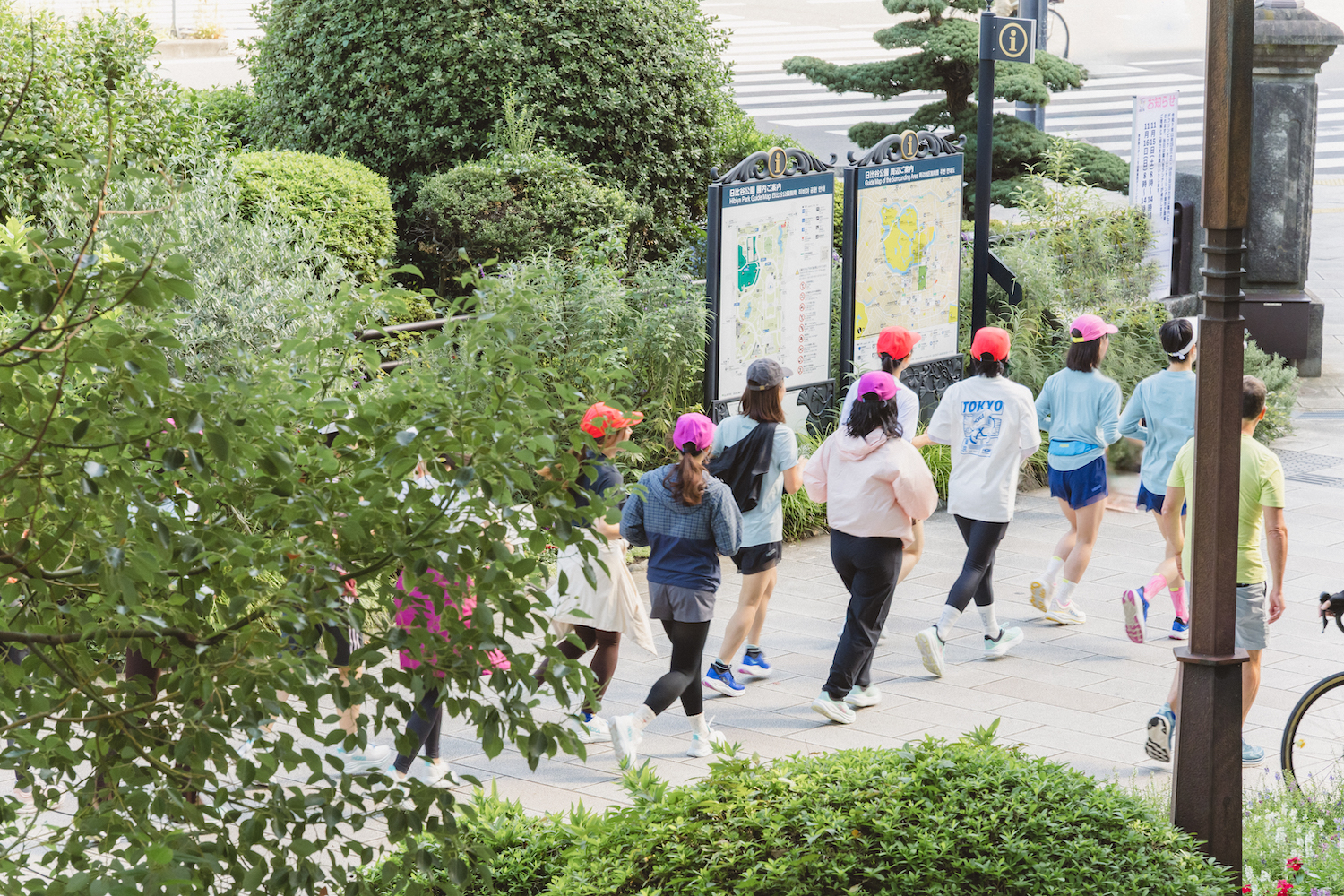 8:30 〈ホカ 丸の内〉で集合!《ホカ》のランニングシューズをみんなで履いて出発