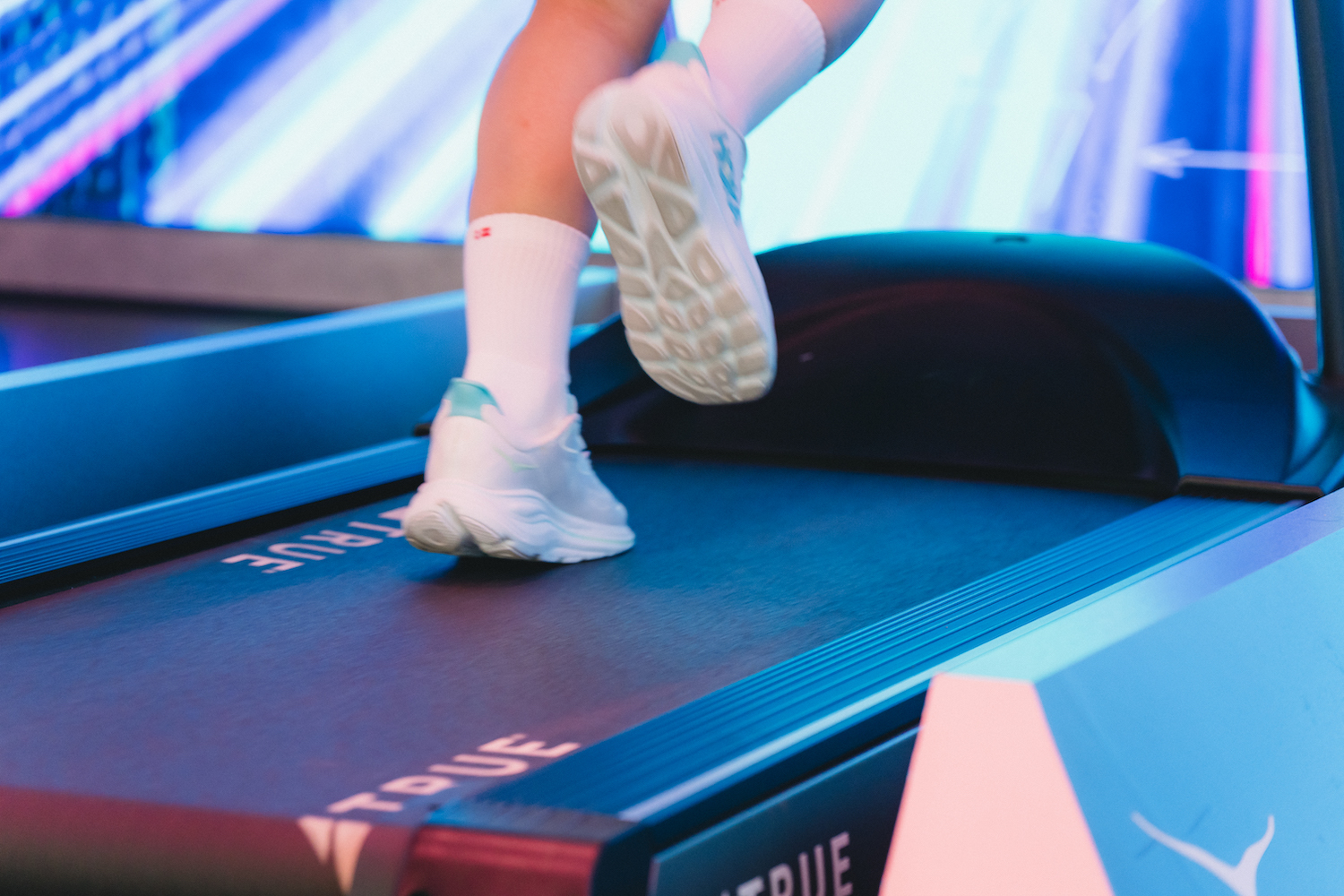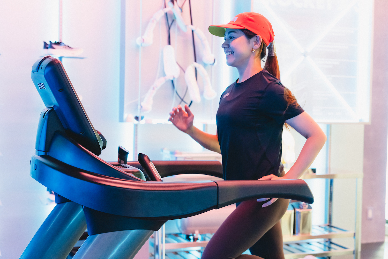 ランニングマシーンで試走ができ、さらにランニングフォームがチェックできちゃいます(このサービスは〈ホカ 丸の内〉だけ!)。桜子ちゃんはさすがのフォーム…!みんなも興味津々で、「思っていたより良いフォーム!」「もっと前傾になっていいなんて」と盛り上がりました。無料でいつでも試すことができるそうですよ。