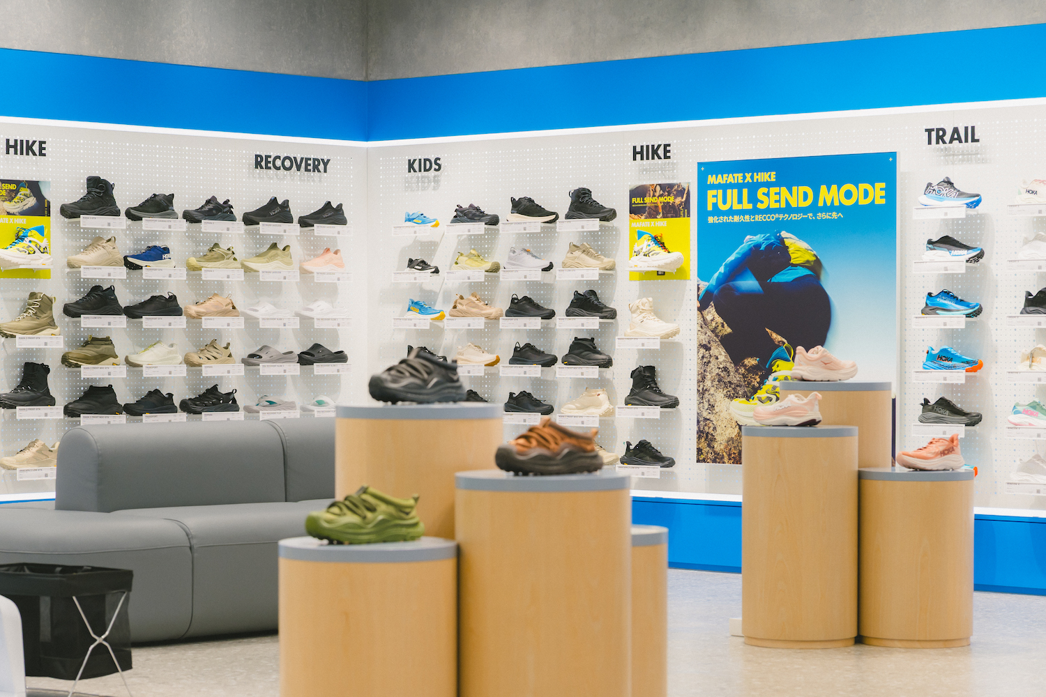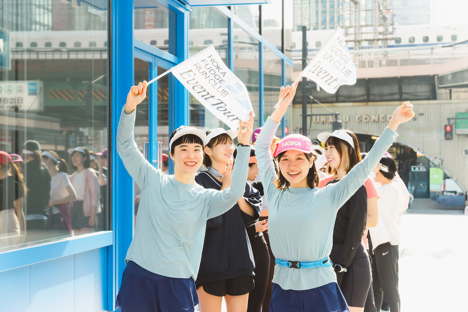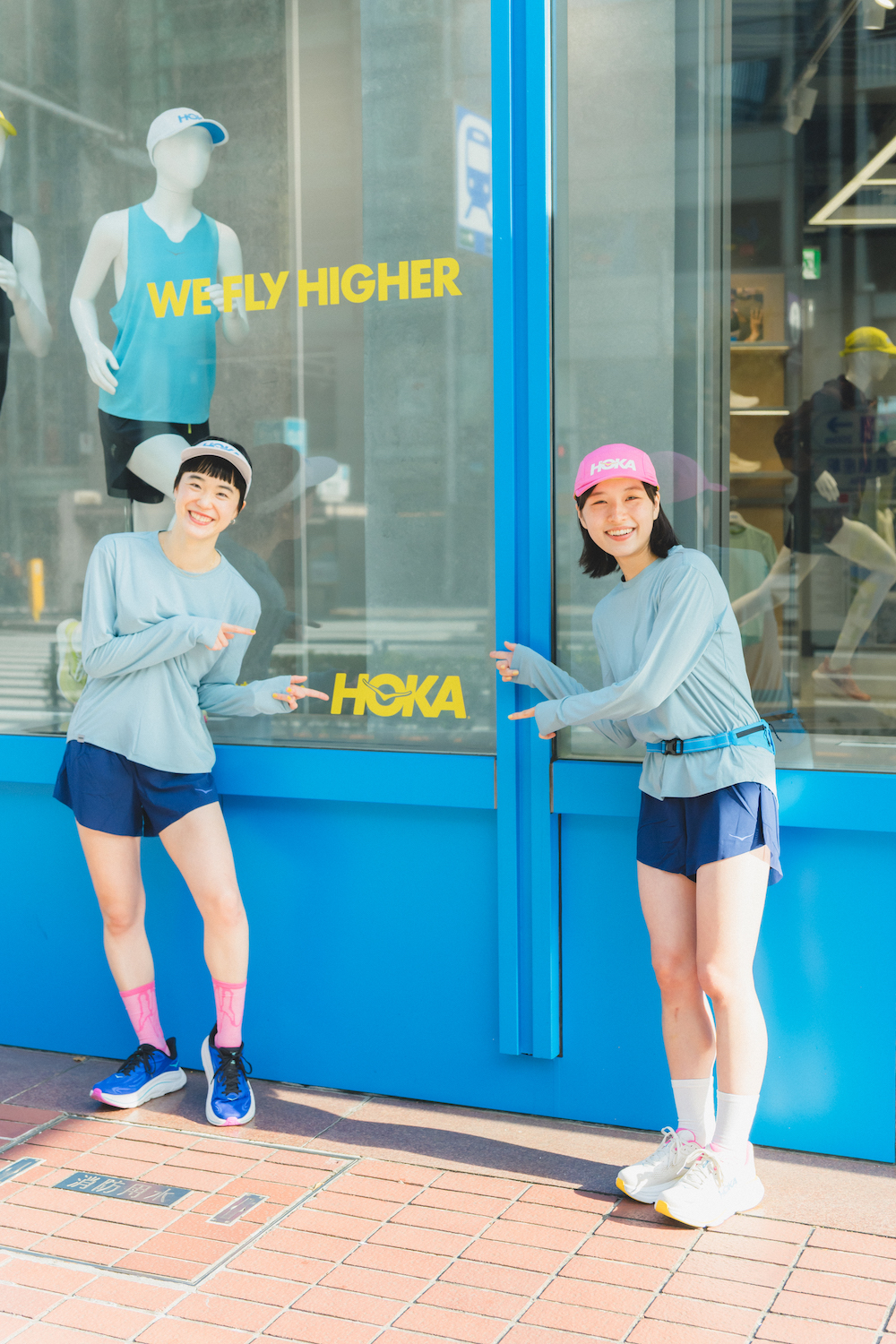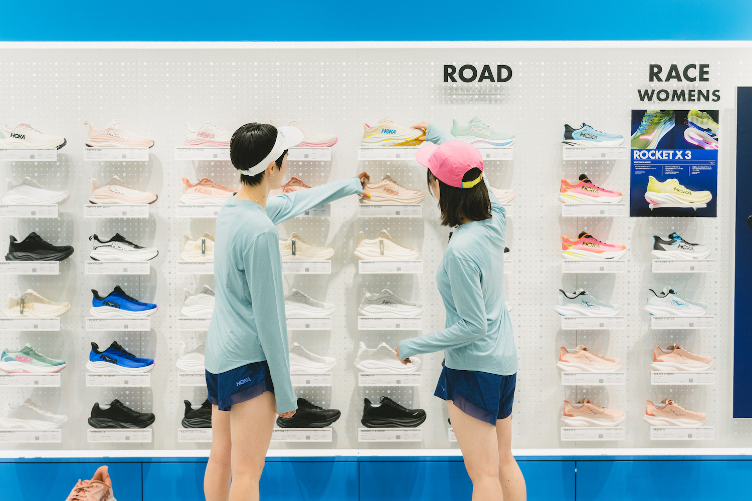 今回の会場は、JR有楽町駅からすぐの場所にオープンした〈ホカ 丸の内〉。豊富なラインナップに加え、ランニングフォームをチェックできる『FLY LAB』や、公式ランニングクラブ「HOKA RUN CLUB」スペースも併設する、都内初の大型店です。皇居も近く、朝からランナーが行き交うホットスポット。