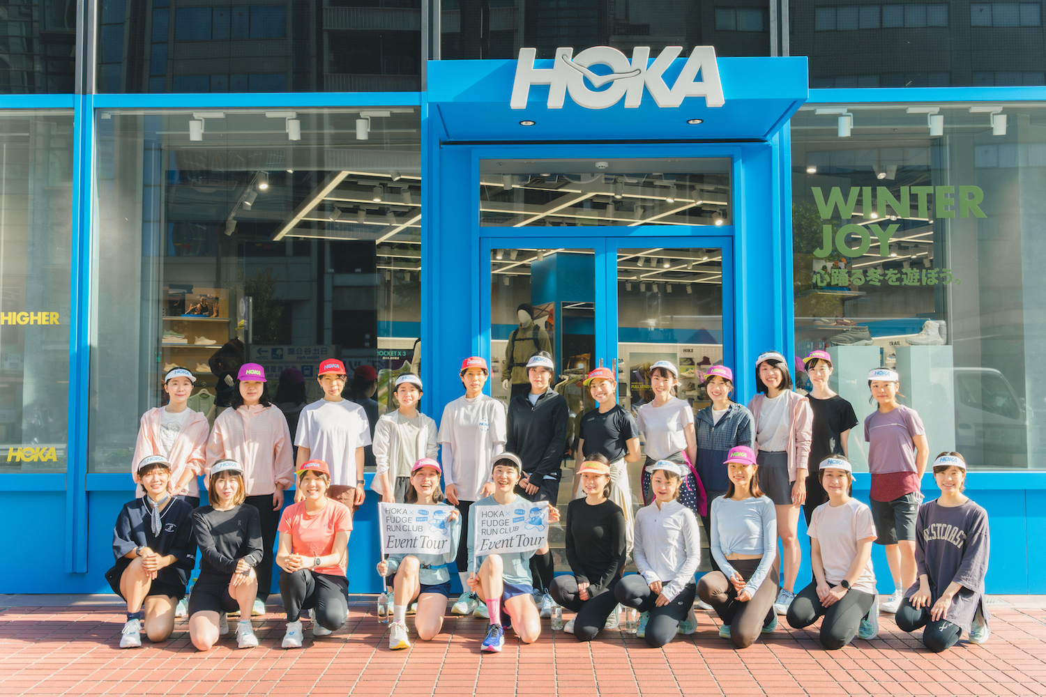 パフォーマンスブランド《HOKA(ホカ)》とFUDGEランニング部がコラボレーションし、全3回に渡って開催するランニングイベント。大盛況だった大阪・心斎橋の第1回に続き、第2回は〈ホカ 丸の内〉で開催しました。《ホカ》の人気ランニングシューズ「BONDI 9」と「CLIFTON 10」を履いて、日比谷公園をゆる〜くジョグ。ここでは当日の様子をレポートします。