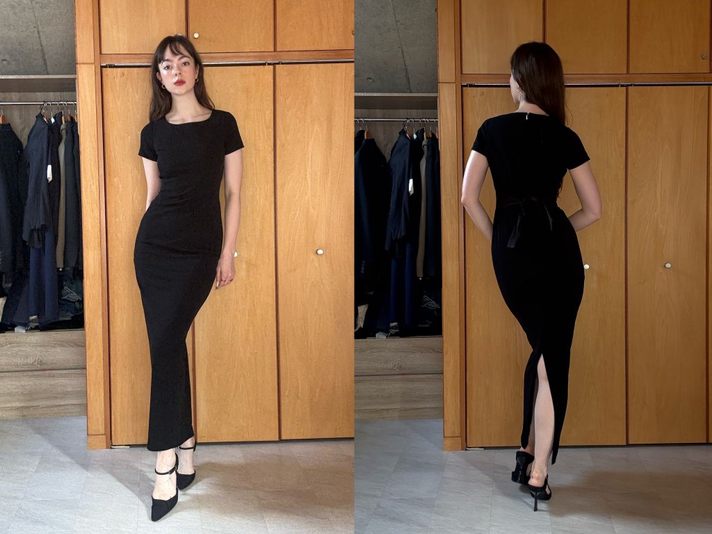 仕事でもパーティでも着ることのできる完璧なブラックドレス。女性の身体を最も綺麗に魅せられるラインになるよう細かくデザインした自信作です」