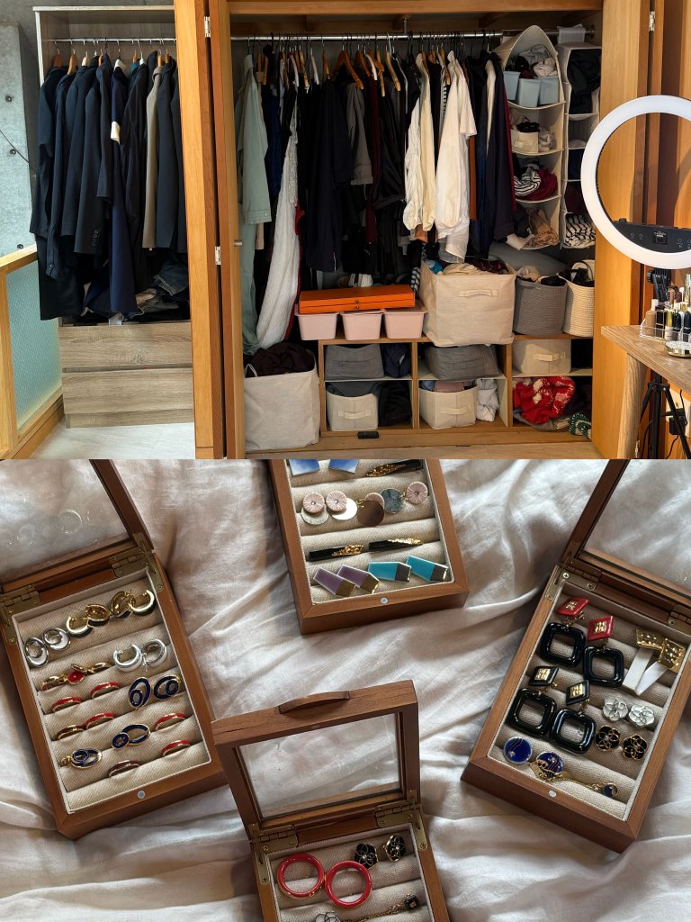 「ファッション、美容、靴、バッグなど、私の情熱に関わるものは少しのカオスが必要(笑)。クローゼットやシューズクローゼットの中には、扉を閉めればJapandiの世界に戻れるような『隠せるカオス』を潜めています」