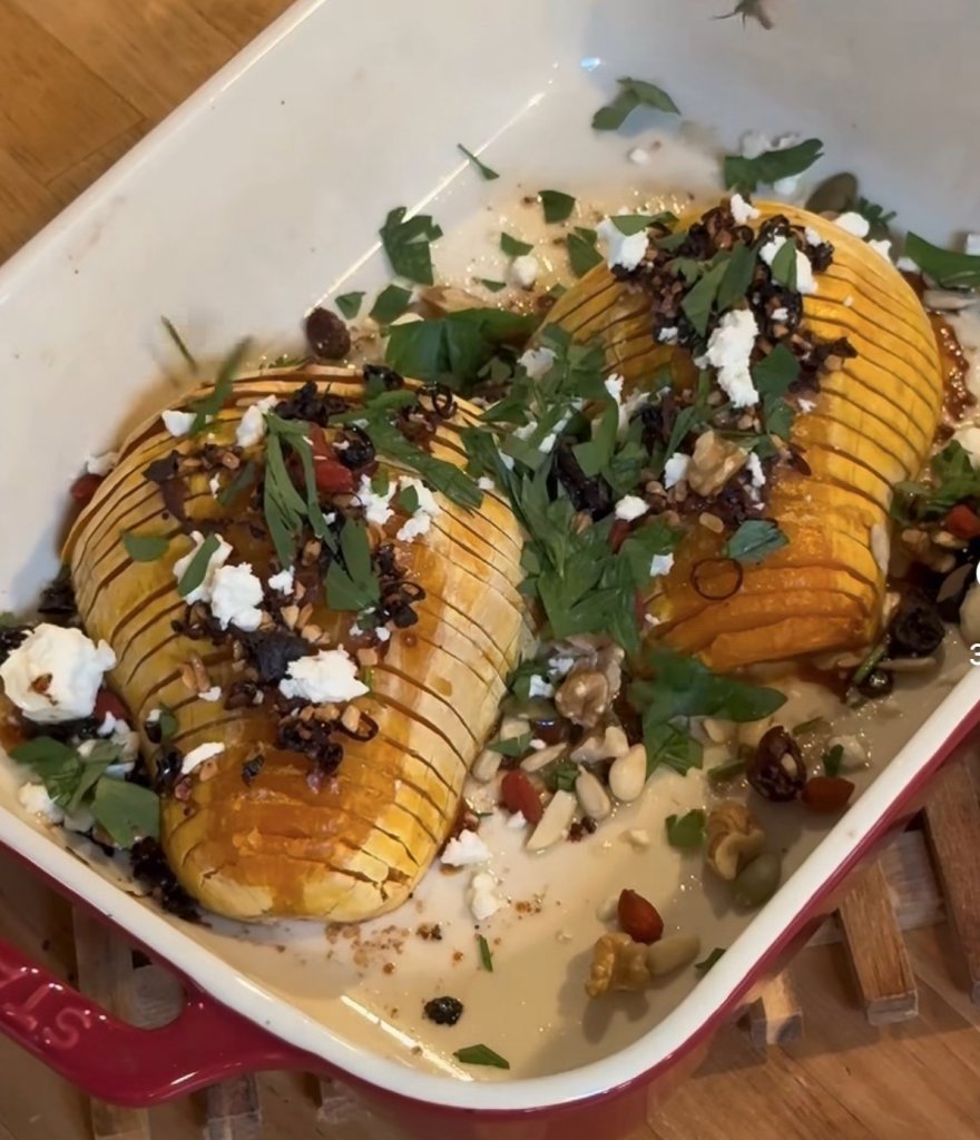 そんな彼女が最近作った料理の中で一番美味しかったのは、タニアさんのバターナッツカボチャを主役とした「ハニーチーズ・ローストバターナッツ」のようです。「半分に切って種を取り、チーズとハチミツ、ナッツを乗せてオーブンでじっくりと焼き上げるだけ。トロトロで甘くて、冬にぴったりの優しい料理です」