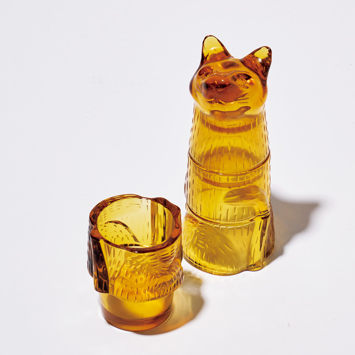 4 つ重ねるとネコさんの姿になるスタッキンググラスは、スペイン・バルセロナに拠点を構えるライフスタイルブランド、《ドーイー》のもの。顔の部分もグラスとして使用可能。ゲストをお迎えする際の楽しい演出はもちろん、インテリアとしてディスプレーするのもおすすめ。