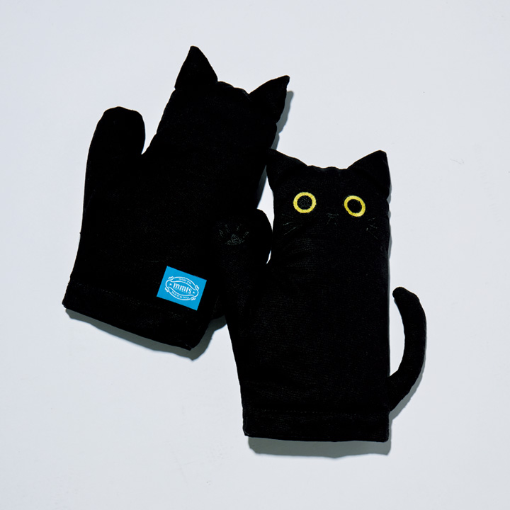中川翔子さんと《ビームス》が共同プロデュースするブランドから、黒ネコのキッチンミトンを発見。愛猫ルナの名前を冠したミトンは、シッポや肉球の刺しゅうなど、細部にまでこだわりが詰まっている。右手用、左手用の用意があり、キッチンのインテリアとしても担うこと請け合い。