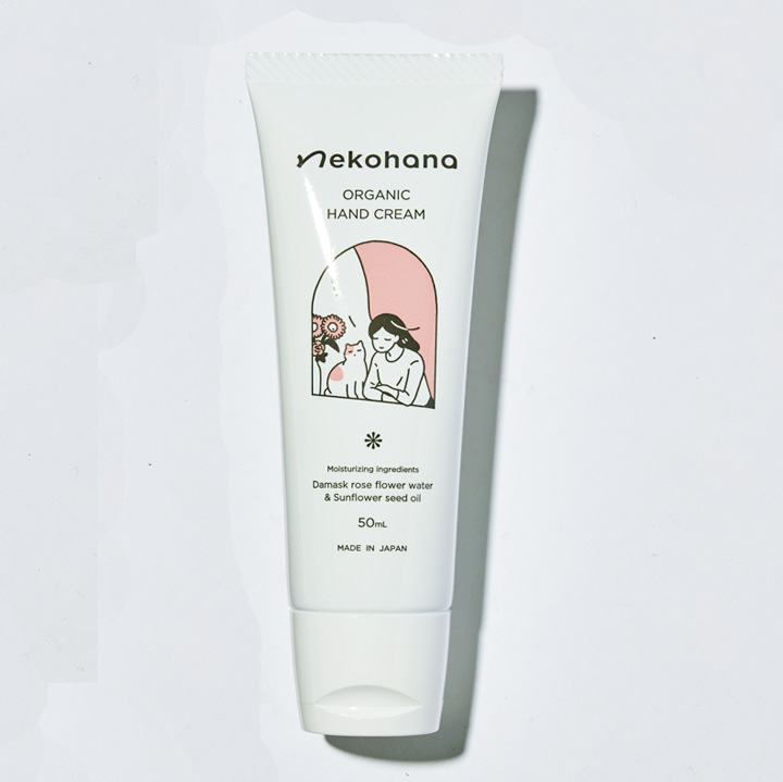 手を洗って、ハンドクリームを塗るとスンスンにおいをかぎにくるネコさん。よく使われているアロマオイルなどは、ネコさんに危険が及ぶ可能性も。獣医師監修のハンドクリームは、保湿力とやさしい香り、無添加処方が魅力。ネコさんにもヒトにも、環境にも配慮した原材料でつくられています。