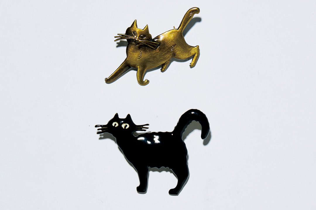 リネンを中心に心地よい着用感にこだわる《ロワズィール》から、躍動感あふれる真鍮のブローチをピックアップ。アンティーク調のデザインが印象的で、コートやジャケット、バッグに添えるだけで洒落感がアップ。ほかにもネコアイテムが多数そろいます。