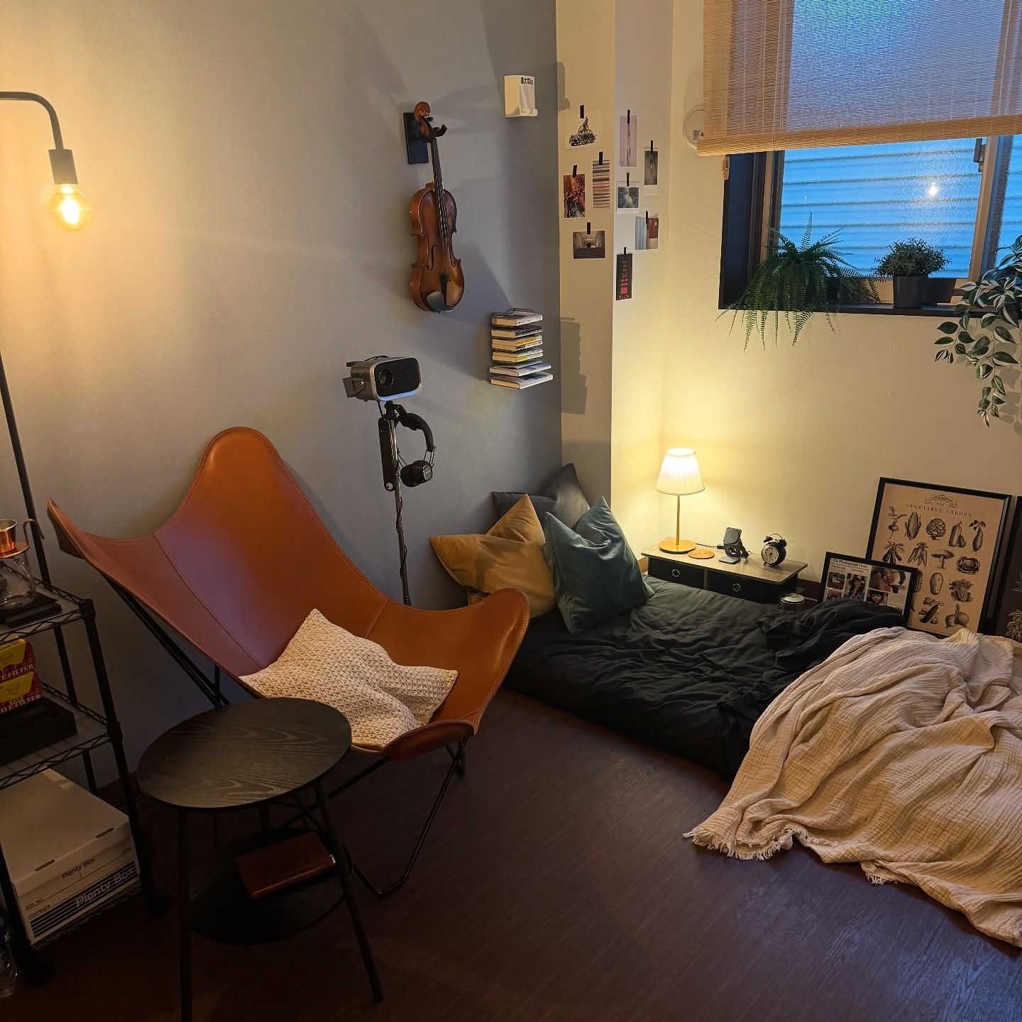 取り入れてよかったというアイテムは、バタフライチェアの隣に置かれているフロアライト。メインの照明を天井の蛍光灯から変えるだけでも、お部屋の印象はがらりと変わりますね。