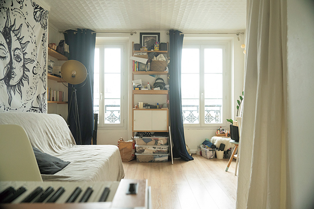 以前、友達と住んでいたという20平米のワンルームは、窓から入ってくる光が気持ちいい。朝は自然光でメイクをしたり、ふと思いついた詩のフレーズをPCに書き留めたりする。