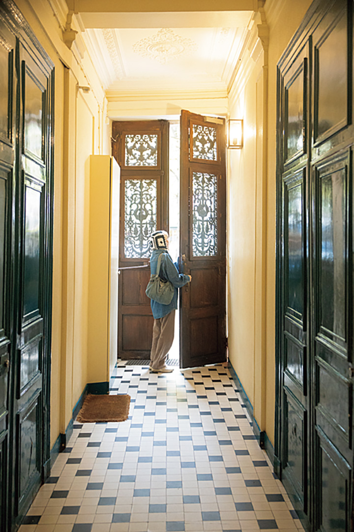 螺旋階段を6フロア分下り(エレベーター無し!)、彫刻やアイアンワークなどの細工が施された、装飾的なオートロックドアを開けてさあ出勤。職場のブーランジェリーまでは徒歩8分。