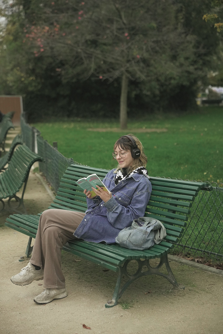 好みの本は、自身の故郷であるボルドー出身の作家のもの。家族愛あふれるあったかい小説がお気に入り。出かける時はいつも本を持ち歩いており、天気の良い日は公園のベンチで物語の世界にそっと浸る。