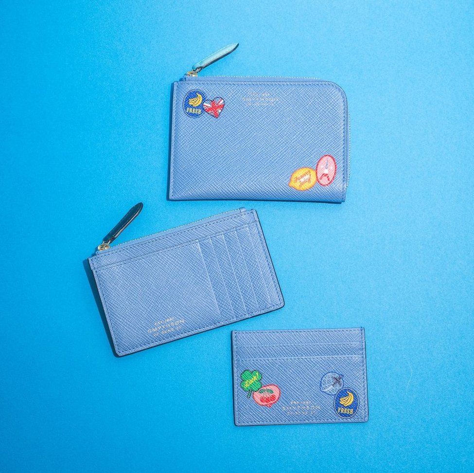 英国ラグジュアリーを代表するブランド《スマイソン》のカードケースは、持っているだけで背筋がすっと伸びるような存在。ステッカーのデザインがあしらわれた新作もおすすめ。