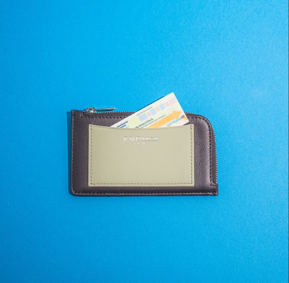 やわらかな配色が目を引く《ジェイ&エム デヴィッドソン》のカードケース。L字ファスナーで中身が見やすく、外ポケットにはよく使うカードをさっと収納できるのがうれしい。