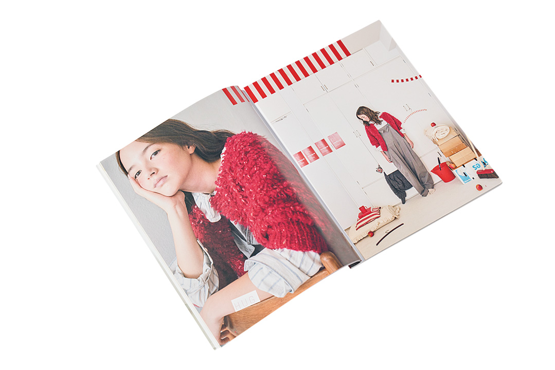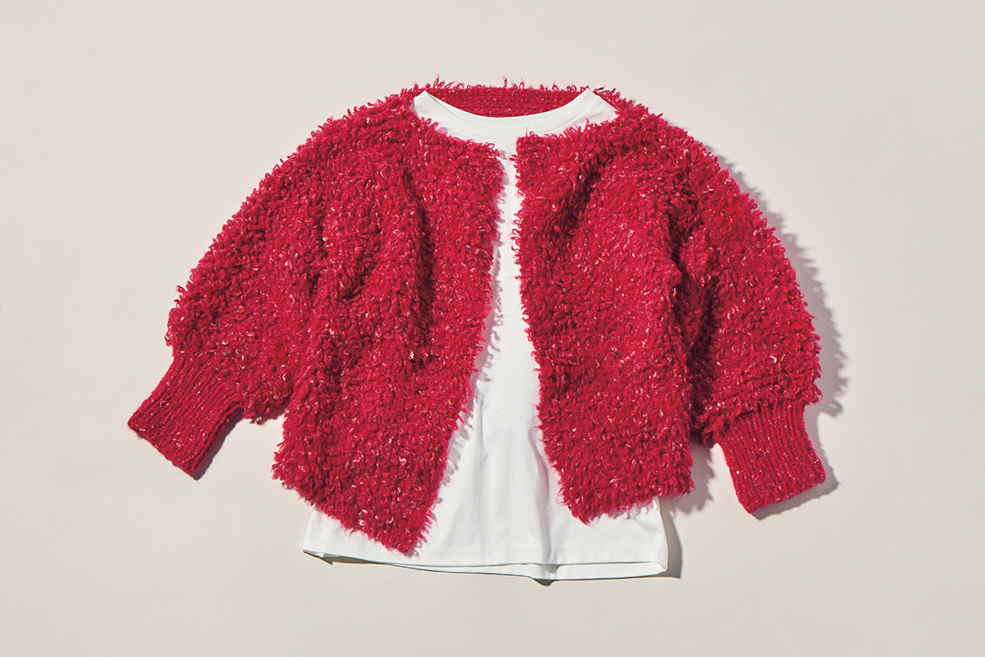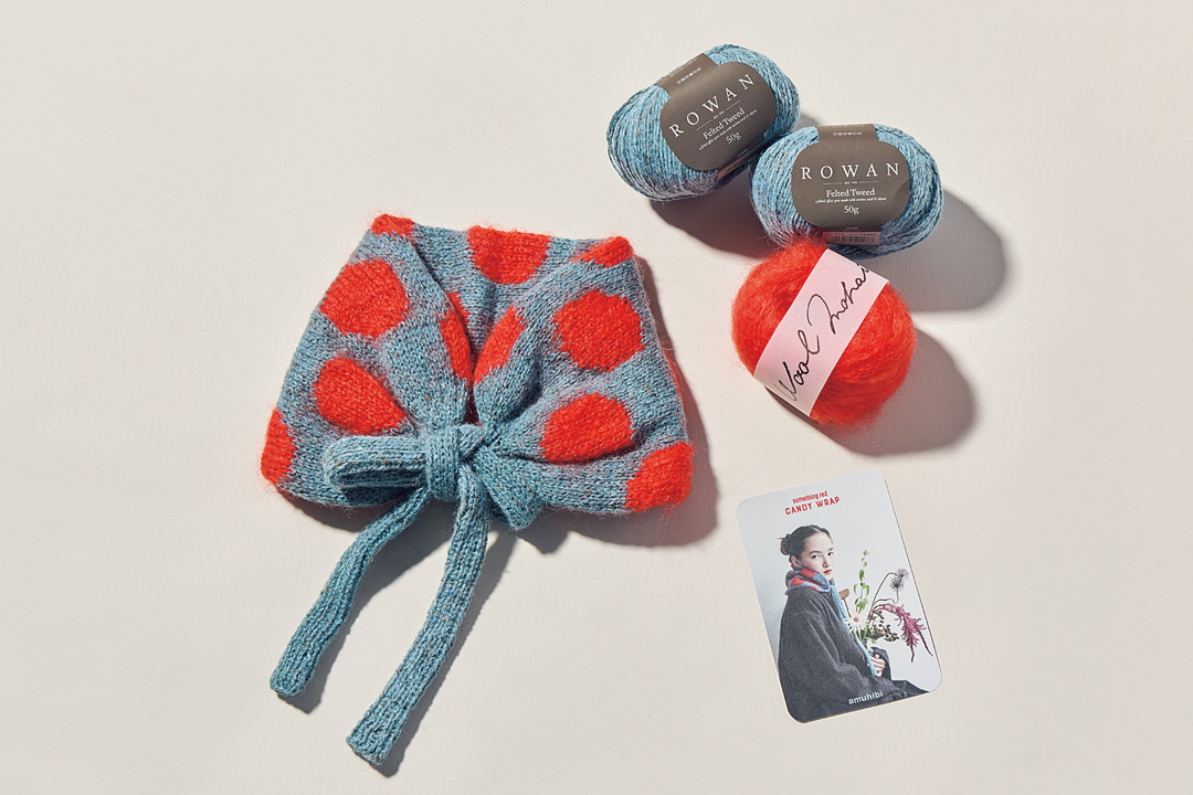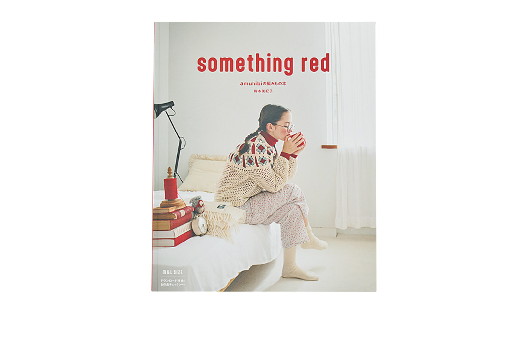 グラフィックデザイナー、アートディレクターを経て、手編みのニットデザイナーとなった梅本美紀子さん。2021年には福岡にて輸入毛糸専門店〈アムヒビ〉をオープン。編み物教室も開いており、県外から通う生徒さんもいるのだとか。2025 年11 月には、新刊『サムシング. レッド』を出版。“赤い毛糸”をキーワードに梅本さんデザインの編み図が7 点と、その他人気ニットデザイナーの編み図が3 点掲載されている。この書籍と〈アムヒビ〉で販売されている毛糸のセットを用意したらいざ、編み物スタート。ミニマフラーの「キャンディ ラップ」とカーディガンの「ハグ」、どちらにする?