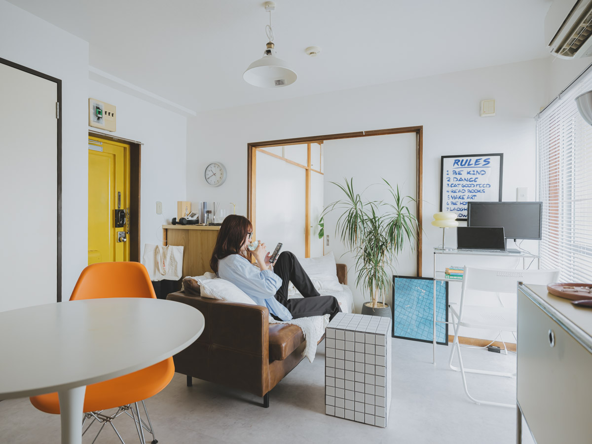 「家賃の安さと日当たりのよさに惹かれて決めました」と話す彼女は、在宅勤務ができる広さを条件に、寝室とリビングを分けられる1DKの間取りを選びました。