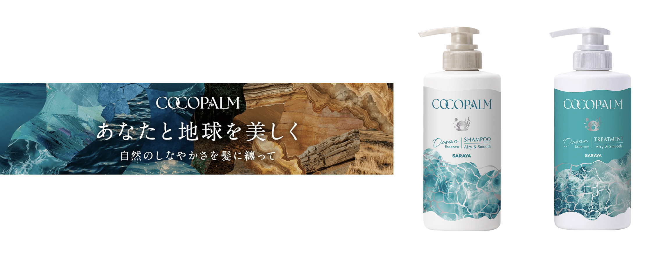 (左)ココパーム オーシャンエッセンス シャンプー 450mL ¥1980、(右)ココパーム オーシャンエッセンス トリートメント 450mL ¥1980