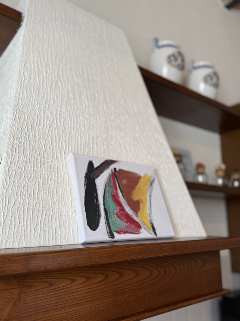 「彼の思想がカラフルに表現された作品で、キッチンに飾って眺めるだけで元気をもらえます。子供が描いたというだけで私たちにとって価値のあるものになるんです」