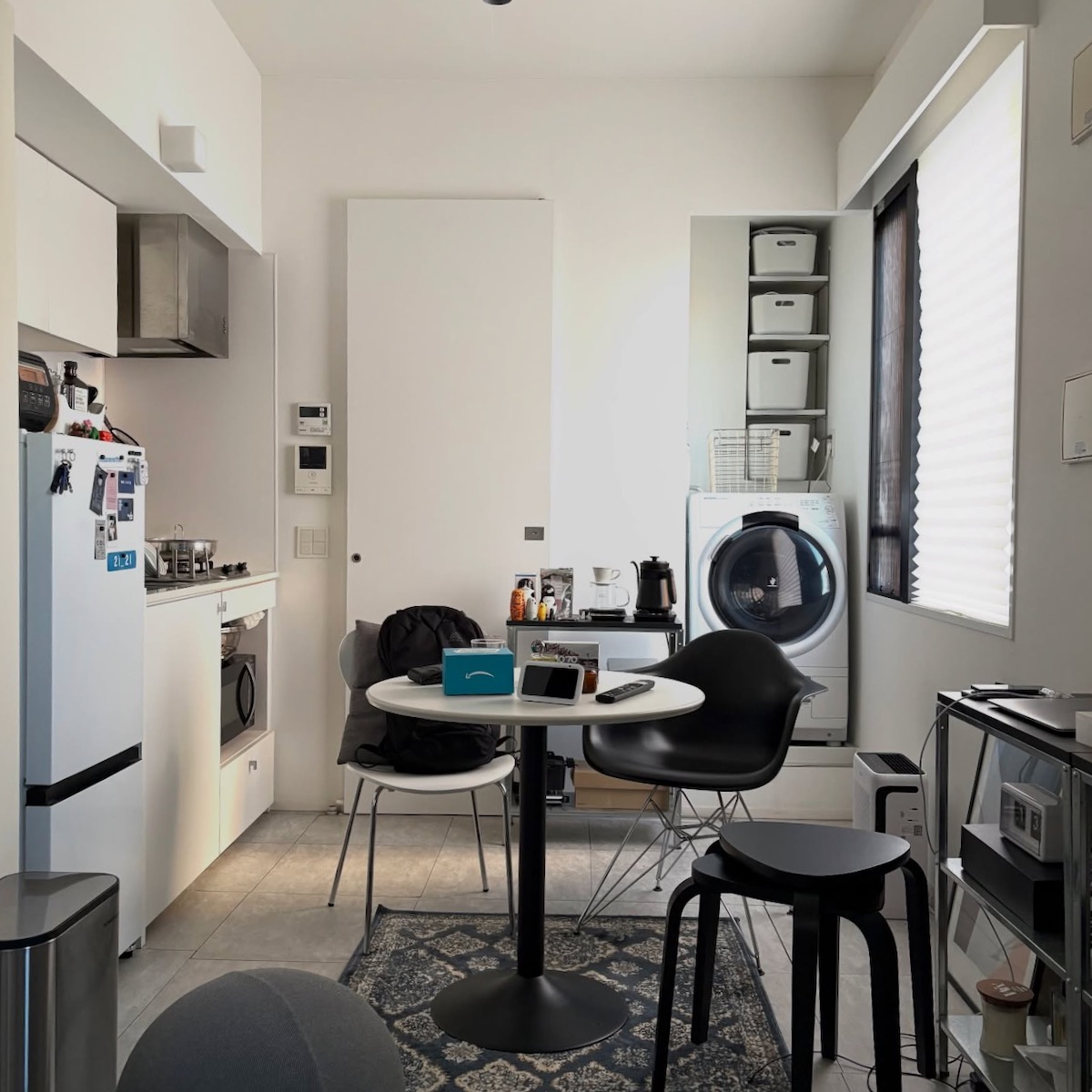 エスプレッソマシンでカフェラテを淹れたり、IKEAのチェアに座りながら、プロジェクタで窓のロールスクリーンに映像を映して楽しむのが最近のルーティーン。