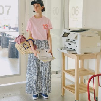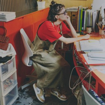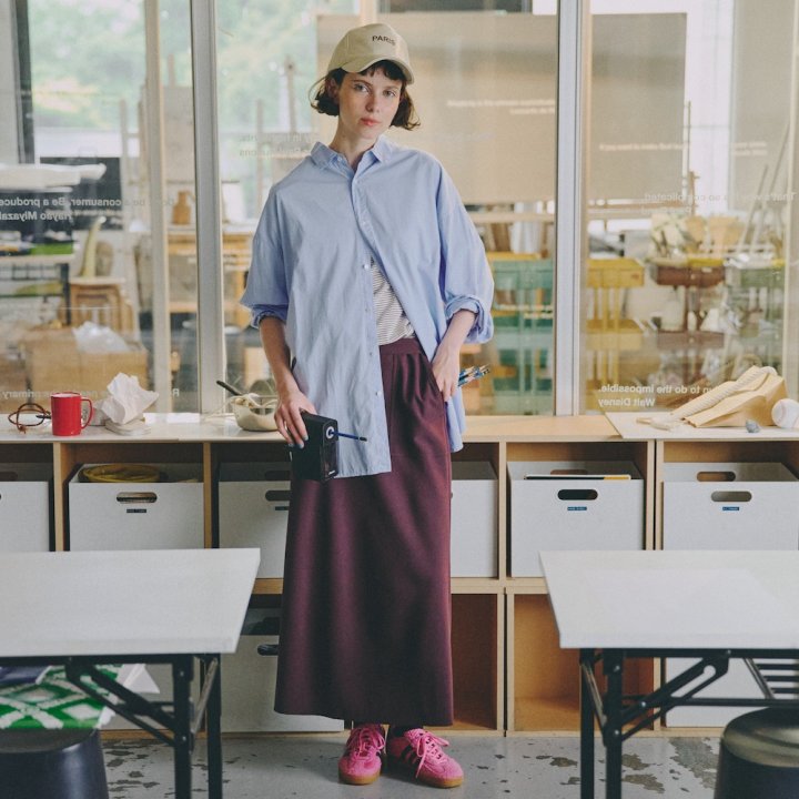 ( WORLD SNAP )オーバーサイズのシルエットも赤でまとめてレディに仕上げる。