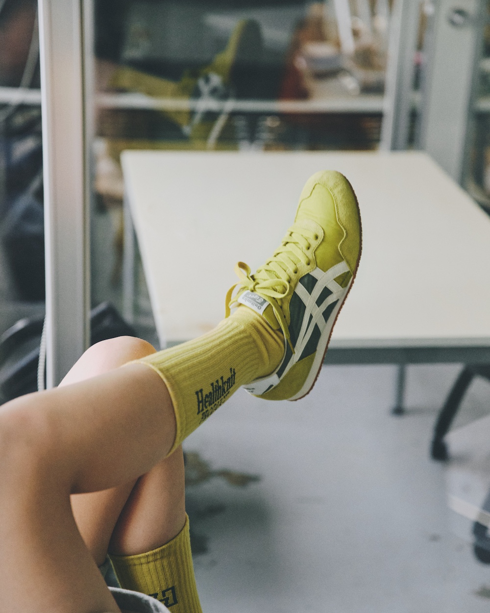 国内はもちろん、近年はグローバルに愛されている《オニツカタイガー》。なかでも「セラーノ」は人気モデル。1970年代に作られた陸上のスパイクシューズからインスパイアした、薄いソールに前足部分が少し巻き上がったデザインが目印。カラーバリエーションが豊富なので、ソックスの色とリンクさせて楽しんで。