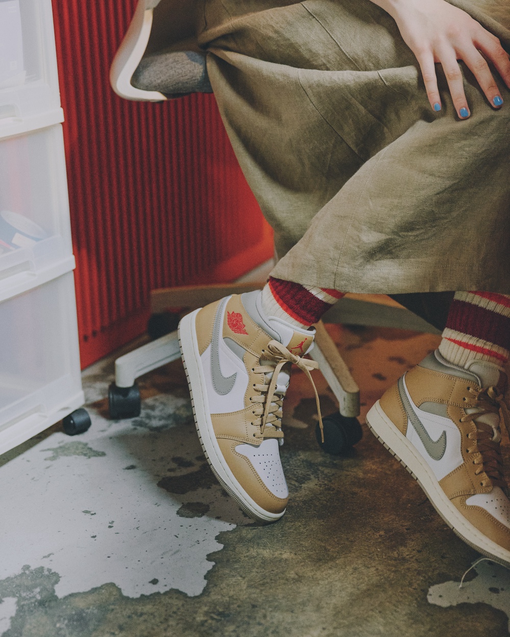 大人が持つなら、ベージュのナイキ・エアジョーダンワンが良い!色を揃えて着こなしたい【FUDGE dig.|バランス上手なあの子がお手本!ローテクスニーカーの着こなしレッスン- 07】