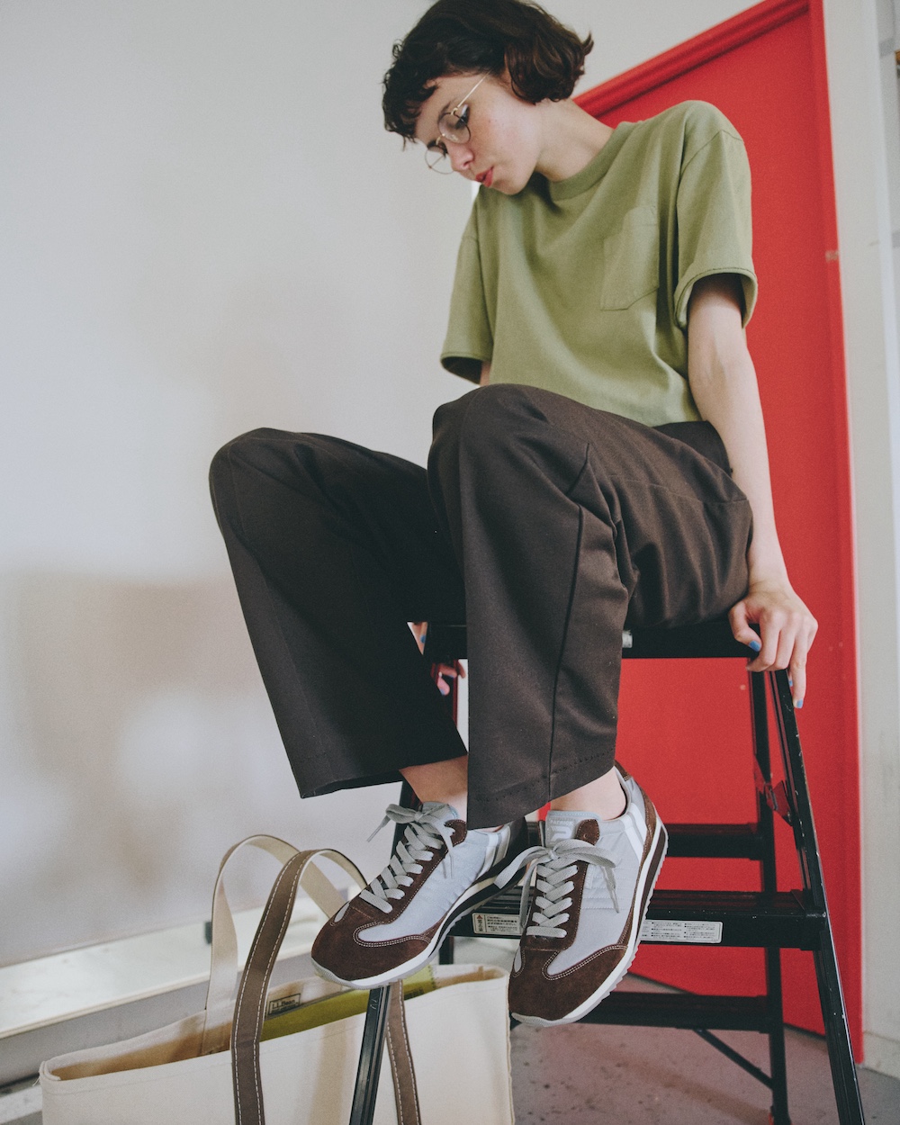 フランス発のシューズメーカー《パトリック》を代表する人気モデル「マラソン」。軽量で耐久性のあるナイロンにベロアの組み合わせが上質な一足。今季は”ボールを使うスポーツ”をテーマに、それぞれが持つイメージを配色で表現。ちなみにグレー×ブラウンはラグビーボールからインスパイア。日本生産にこだわるもの作りにも注目したい。