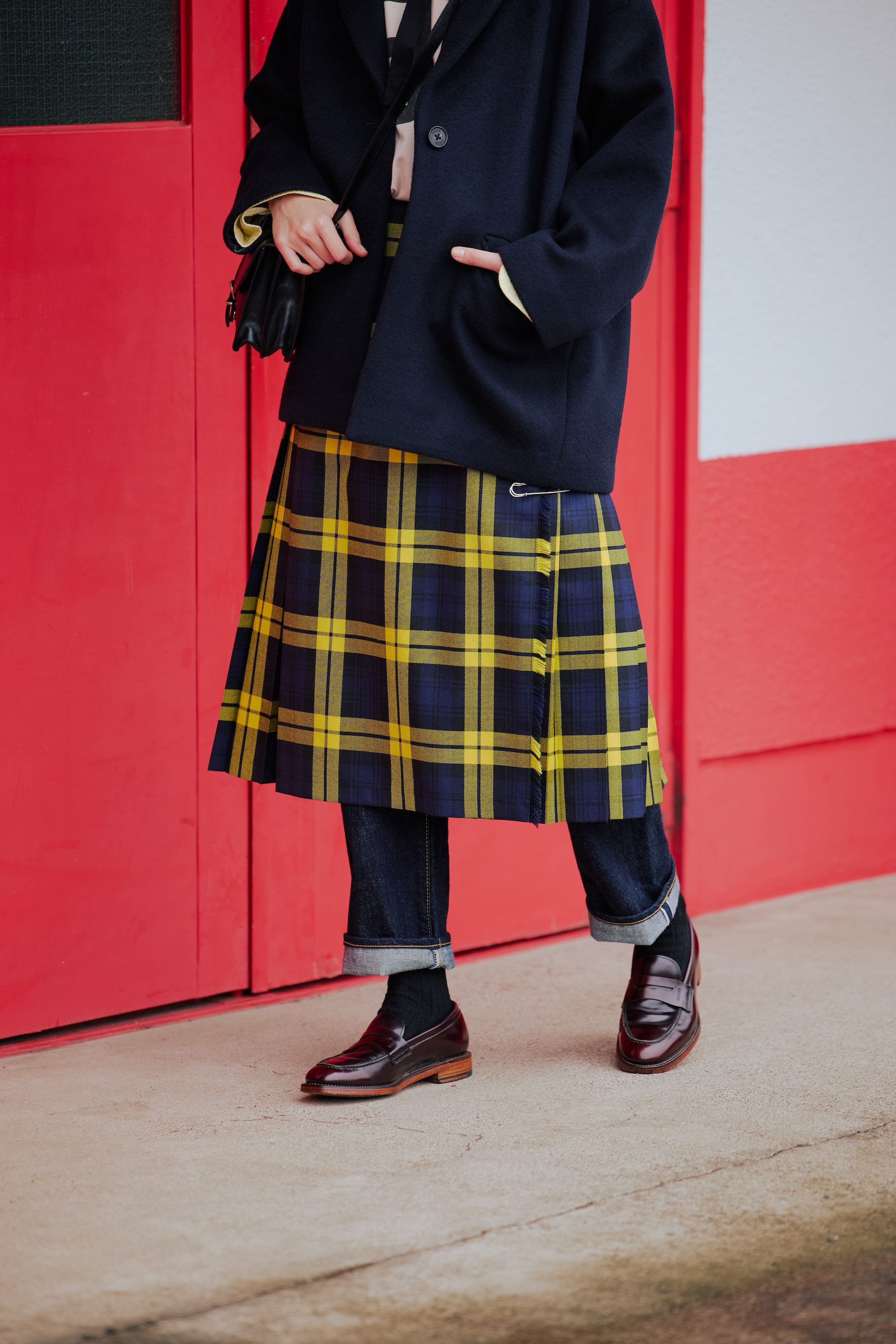 《Demi-Luxe BEAMS(デミルクス ビームス)》が《O’NEIL OF DUBLIN(オニール オブ ダブリン)》に別注したスカートは、フレッシュなイエローのタータンチェックが目を引く一着。シルバーのキルトピンや、フリンジなど本格的なディテールが宿ります。紺ブレライクなジャケットを合わせたトラッドな装いに、さらに磨きをかけるなら、デニムパンツをレイヤードするのがおすすめ。定番スタイルにひねりを加えて、いつもとひと味違ったコーディネートを謳歌して。