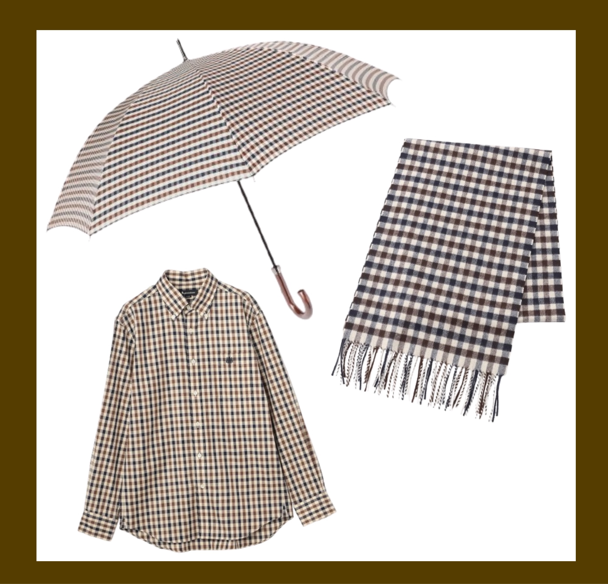 傘(メンズ)¥19800、マフラー(メンズ)¥55,000、シャツ(メンズ)¥28600/ Aquascutum(アクアスキュータム)