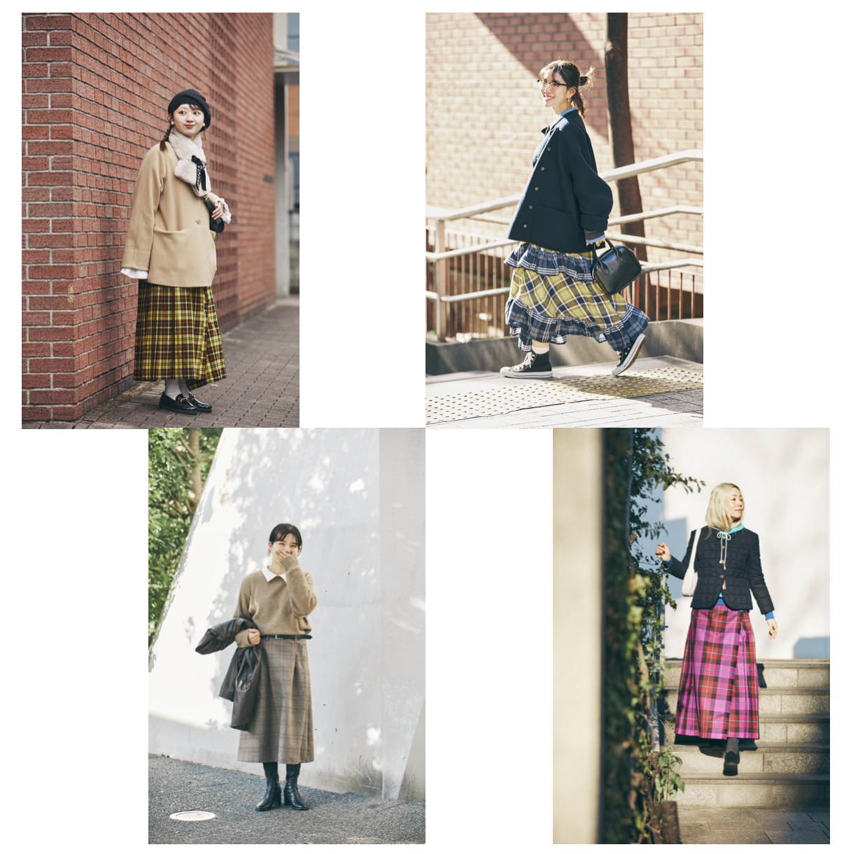 チェック柄スカートとひと口に言っても、柄、レングス、シルエットなどバリエーションは多彩。そこで、さまざま職業で活躍する4人のおしゃれさんをSNAP! 4人に共通していたのは、合わせるアイテムの色をチェック柄から拾って、全体の統一感を図ること。ぜひスタイリングを参考に、冬のチェック柄スカートコーデを楽しんで!