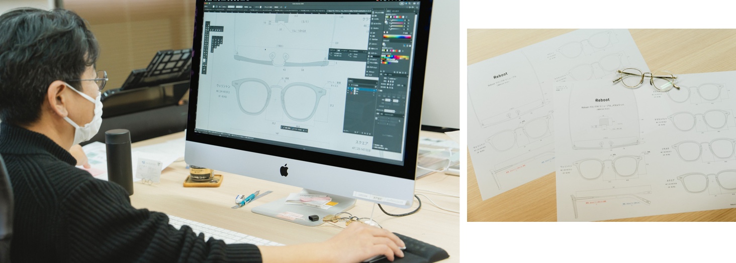 塚田:そうなんです。デザインの出し戻しも何度もあり、完成したら、メガネのパーツや部品を作る現場と、実現できるかの打ち合わせを経て、やっと次の工程にいけます。