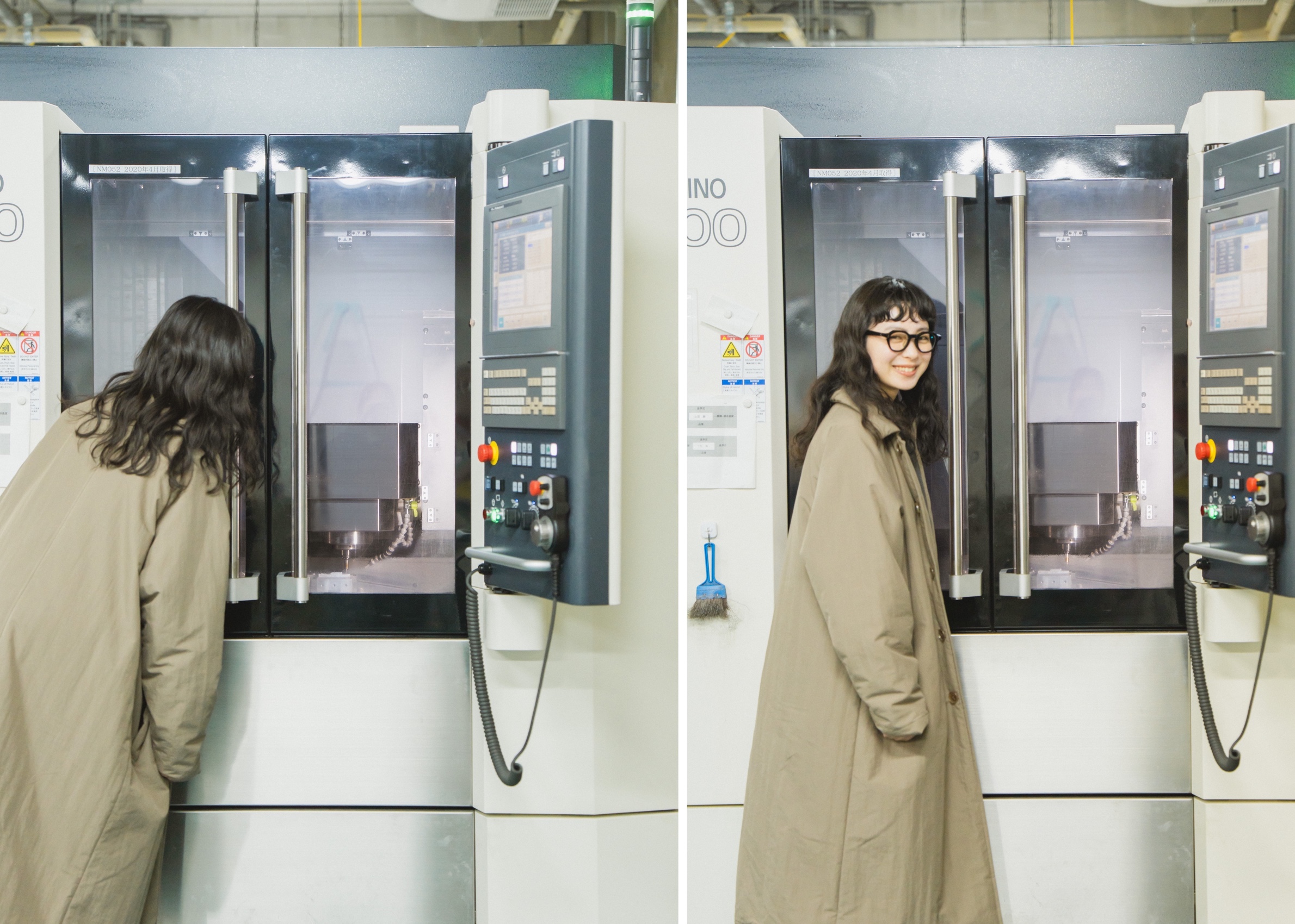 塚田:先ほどの工程で作製した、3Dデータをもとに金属を加工して、金型を作ります。従来、金属の加工を行う際は、必要な工具を手動で都度交換しないといけなかったんですが、この機械は工具の交換もコンピュータ制御で行えるので、一気に作業の効率がアップしたんです。