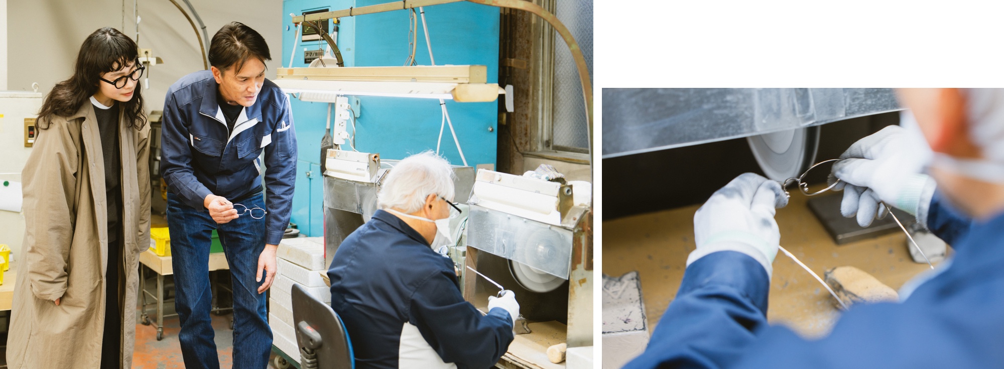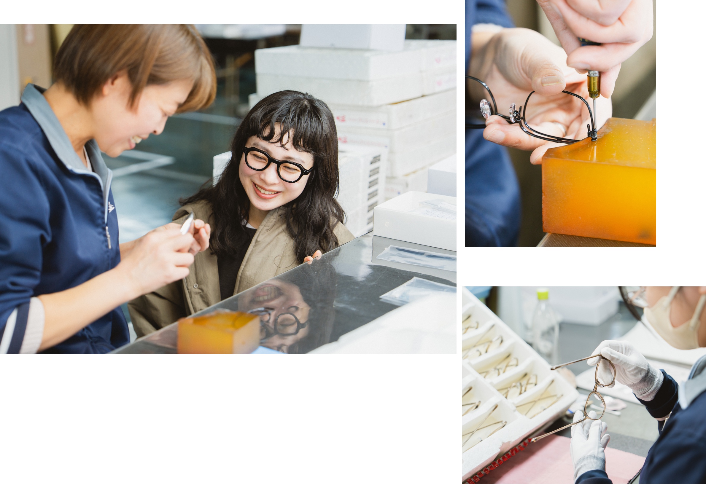 田中:いろんな方達が携わり、この繊細なメガネが作られている。塚田さんが最初に言っていましたが、メガネは工芸品だと、私も思います。作り手にとってもですが、購入者である私たちにとっても同じです。これから《リブート》のメガネを見ると、いろんな職人さんたちの作業風景が浮かんで、さらに愛おしくなりそうです。貴重な機会をいただき、本当にありがとうございます!