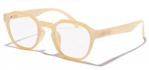 | A:上品なベージュに、ヘキサゴン型のフレームに挑戦してみましょう。多角形は大人っぽくて都会的な洗練されたムードがありますが、丸みがあるのでキリッとした塩顔さんの印象をやわらかくしてくれます。こちらはブラウンの調光レンズなので、顔色を良くするチーク効果もあります。またブルーライトカットも搭載しているので、1日中掛けられます。 |
