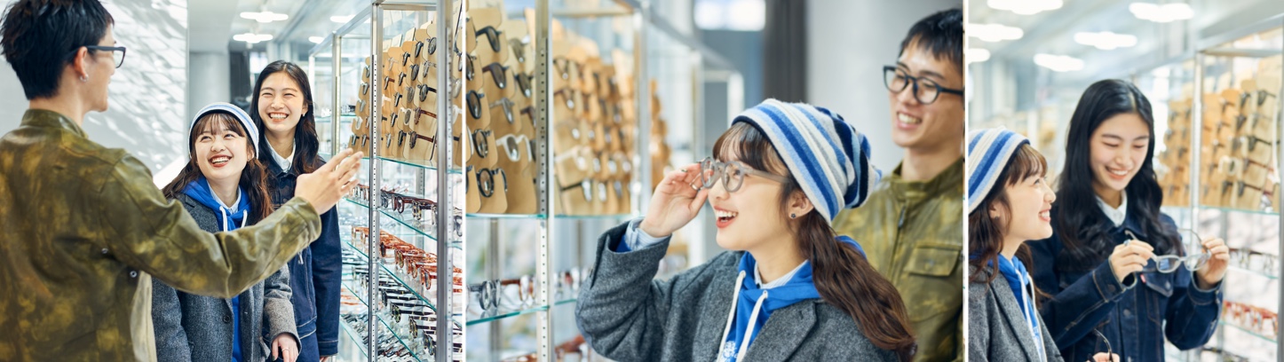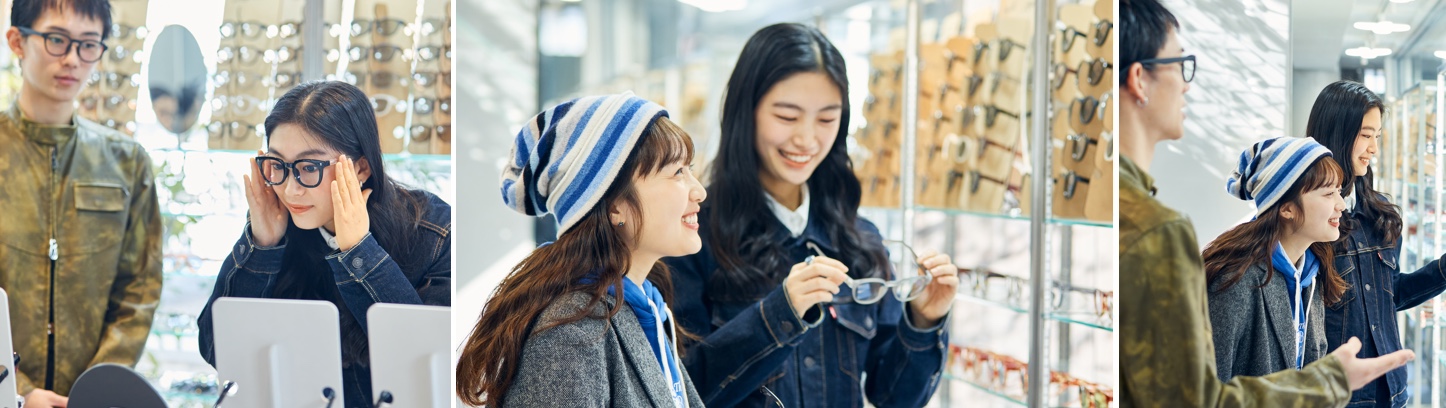 店長さんにアドバイスをもらい、黒縁メガネのほか3つの似合うメガネをピックアップ。