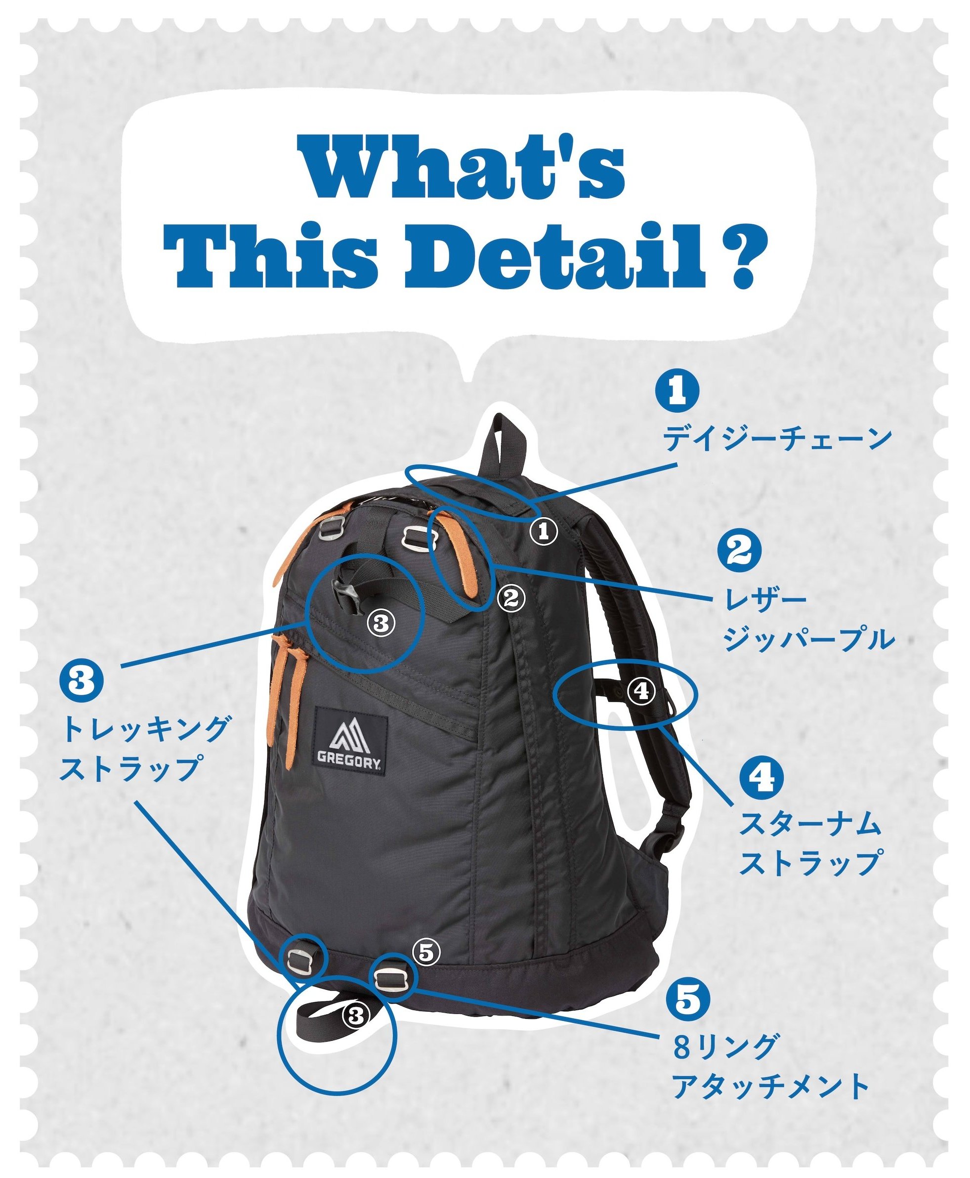 バックパックには、見た目以上に意味のあるパーツがたくさん。アウトドア由来の機能を知ることで、街使いでもぐっと便利になるはずです。今回はグレゴリーの名品「デイパック」を例にパーツの名前と意味をご紹介。